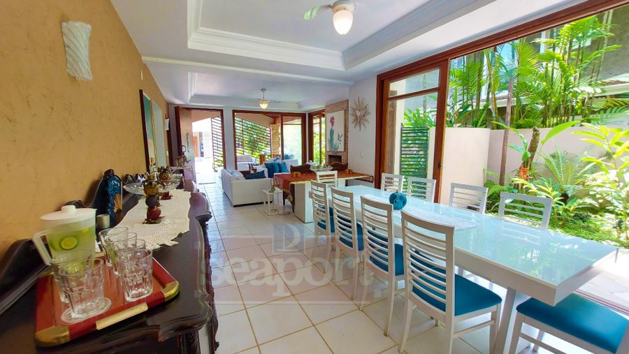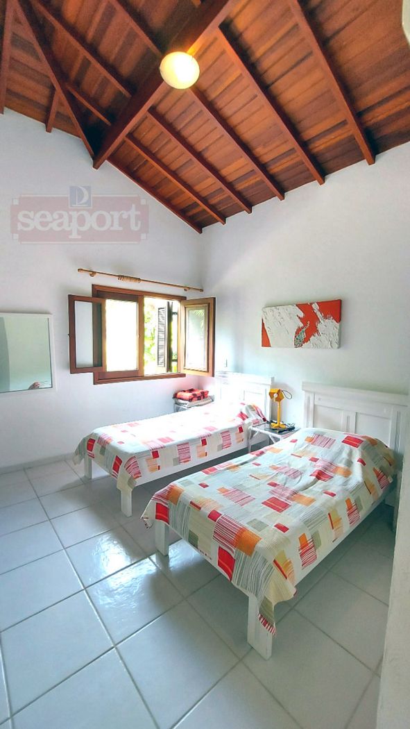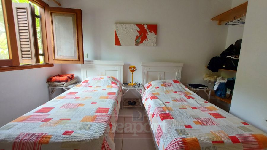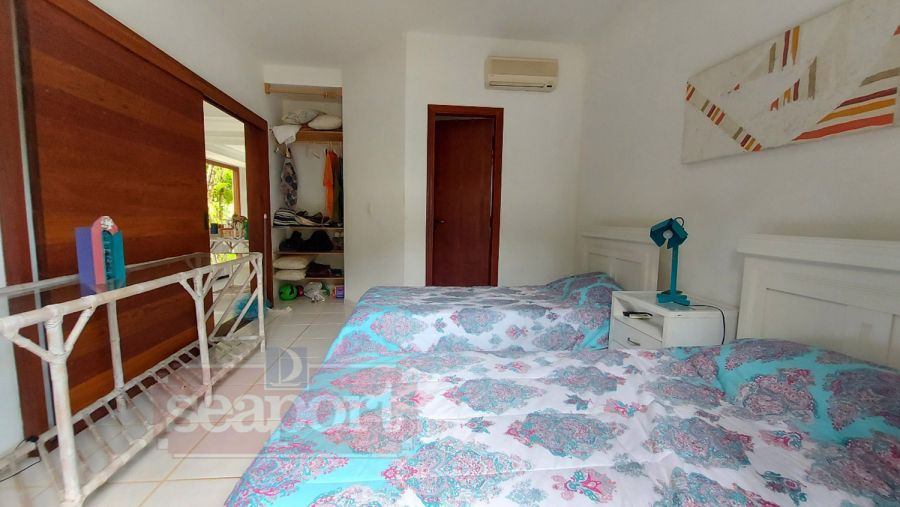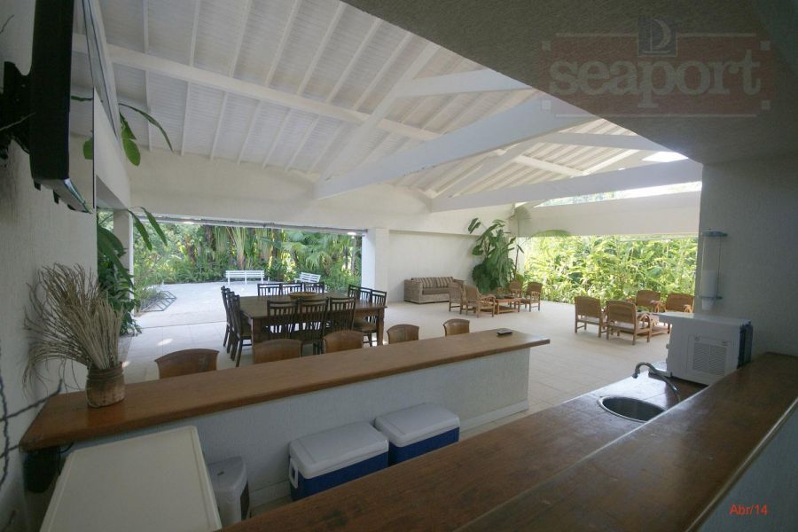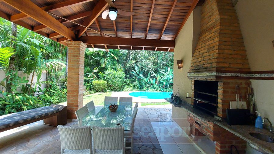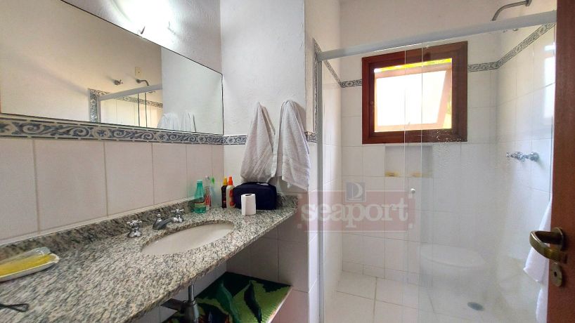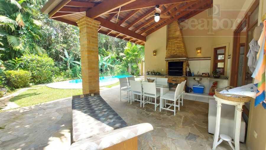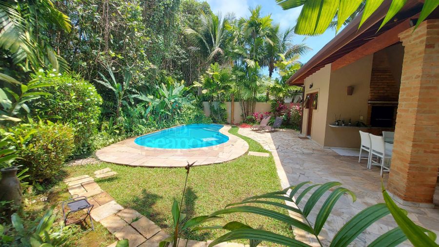 Residência em condomínio fechado à 300m da Praia da Baleia, com 246m² área construída, em fração de terreno de 470m². Possui 5 suítes, cozinha, sala de estar e jantar, terraço, churrasqueira, forno para pizza, piscina privativa e vaga para 4 autos.