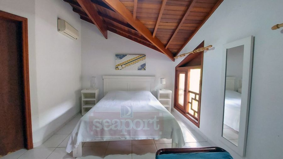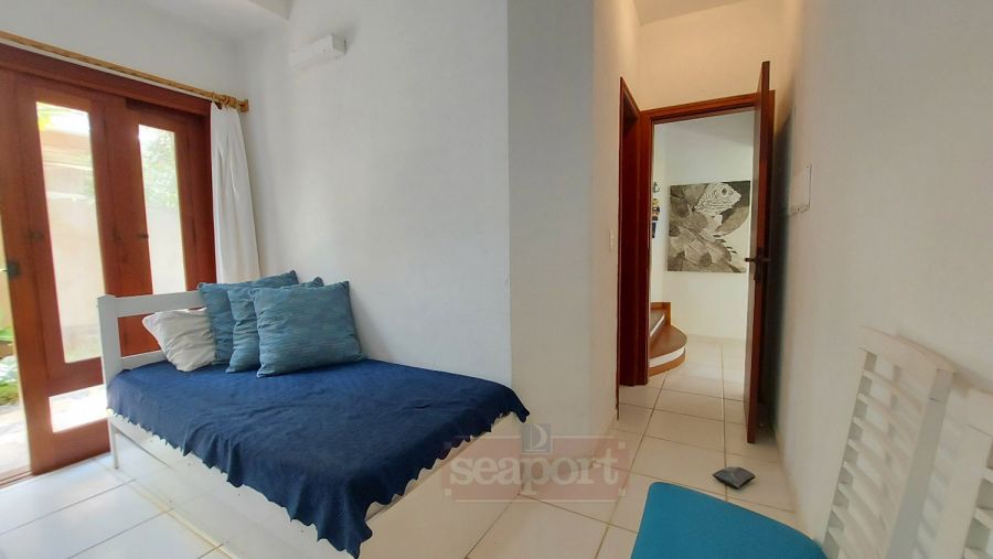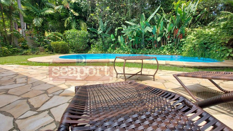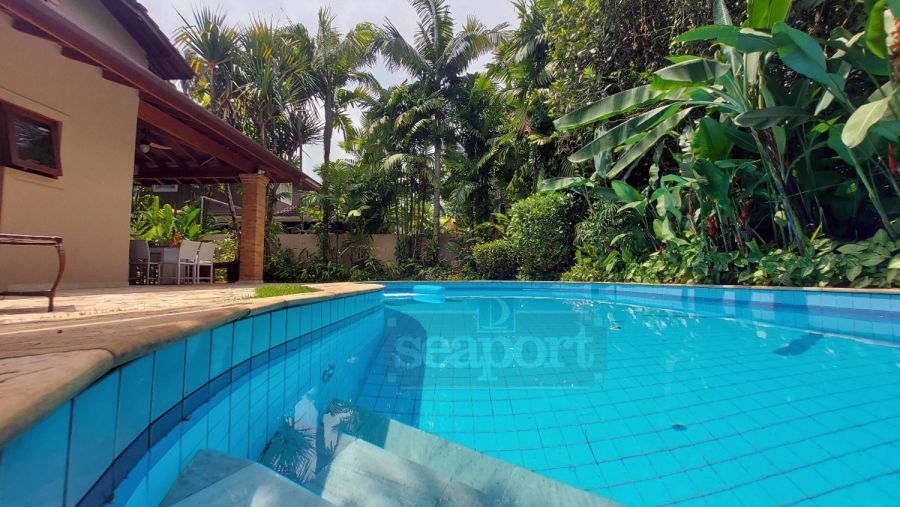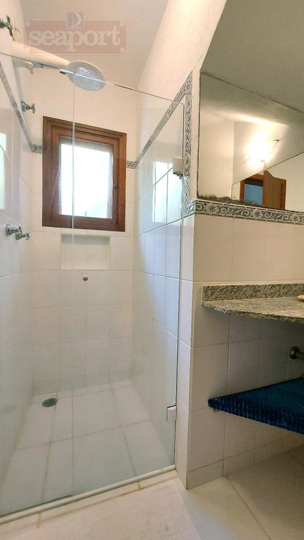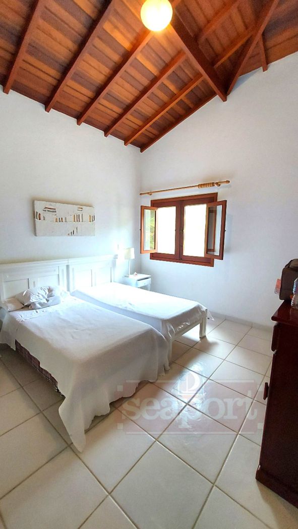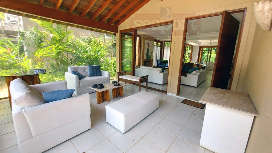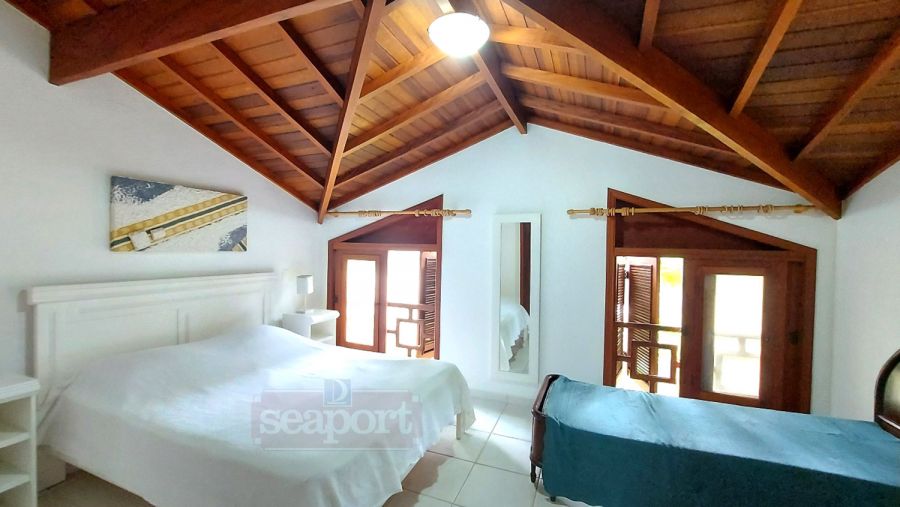 Residência em condomínio fechado à 300m da Praia da Baleia, com 246m² área construída, em fração de terreno de 470m². Possui 5 suítes, cozinha, sala de estar e jantar, terraço, churrasqueira, forno para pizza, piscina privativa e vaga para 4 autos.