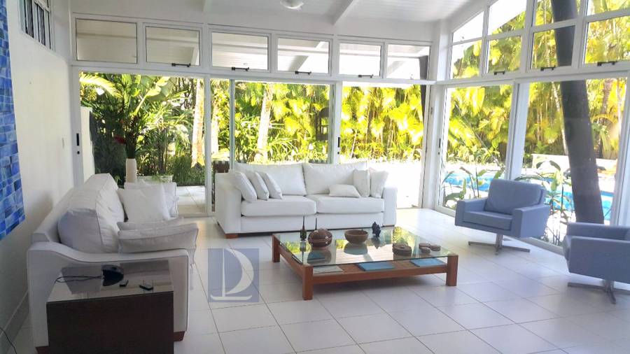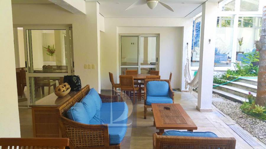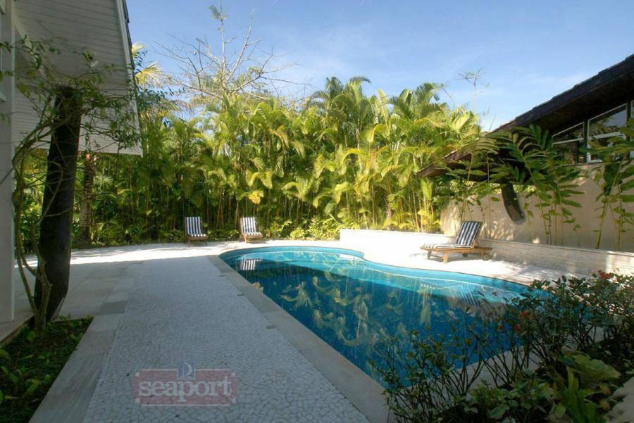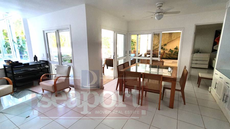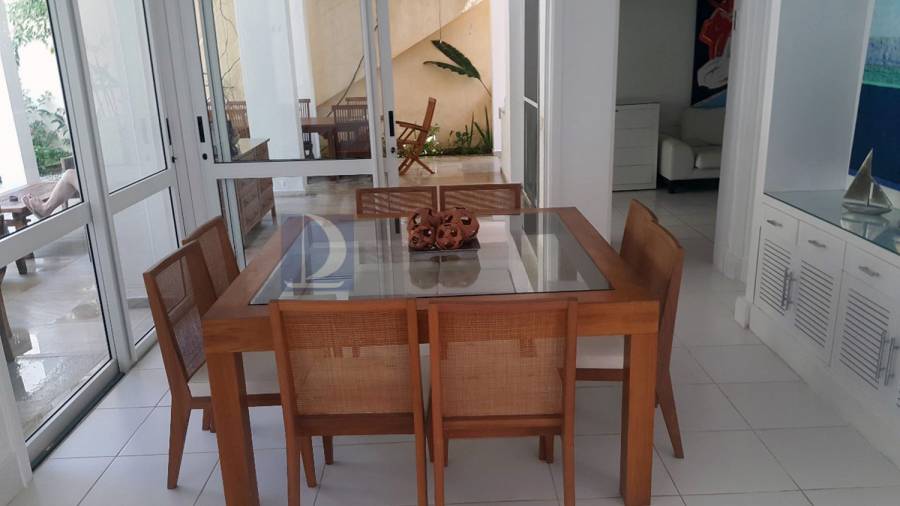Residência em condomínio de alto padrão na Praia da Baleia, com 350m² de área construída em terreno de 1.120m². Possui 4 dormitórios sendo 2 suítes, sala de estar, jantar e tv, lavabo, varanda com churrasqueira, piscina privativa e dependência de empregada.