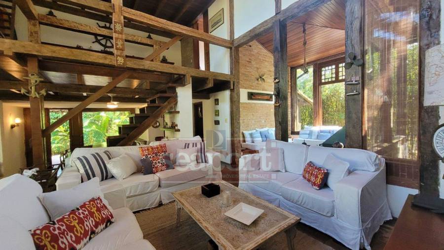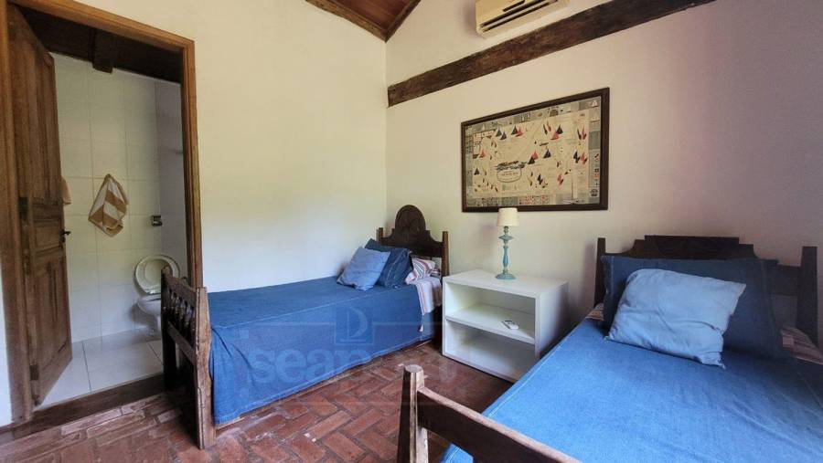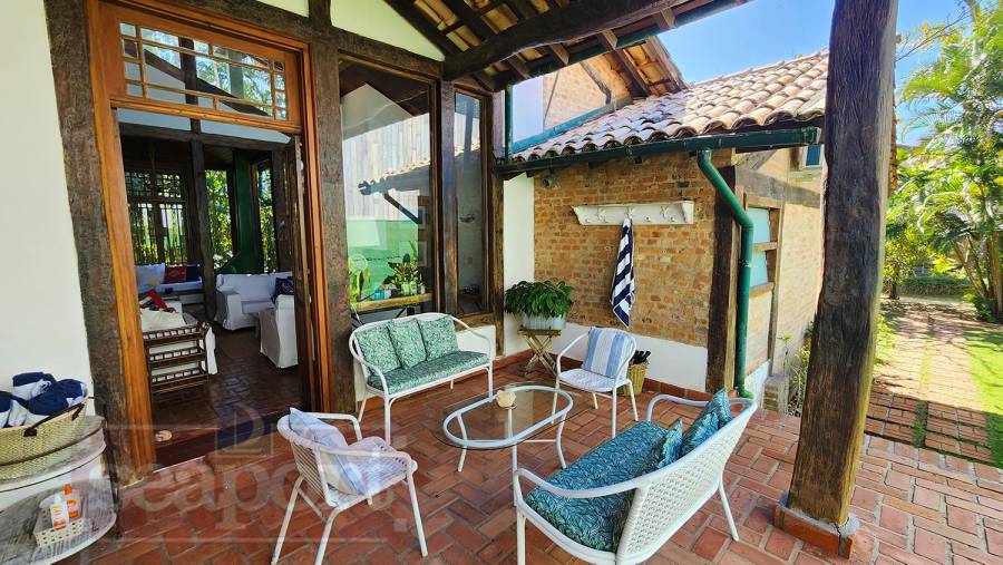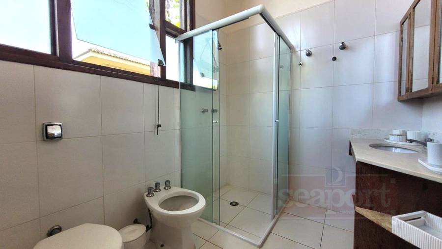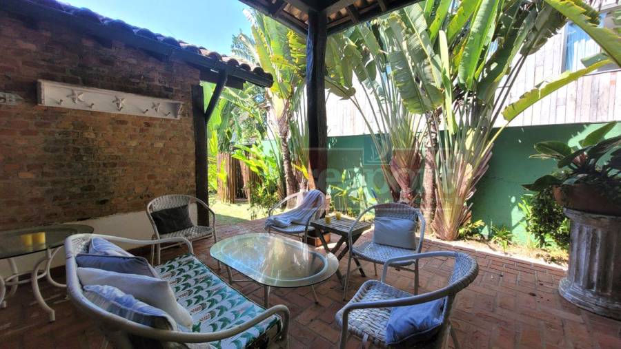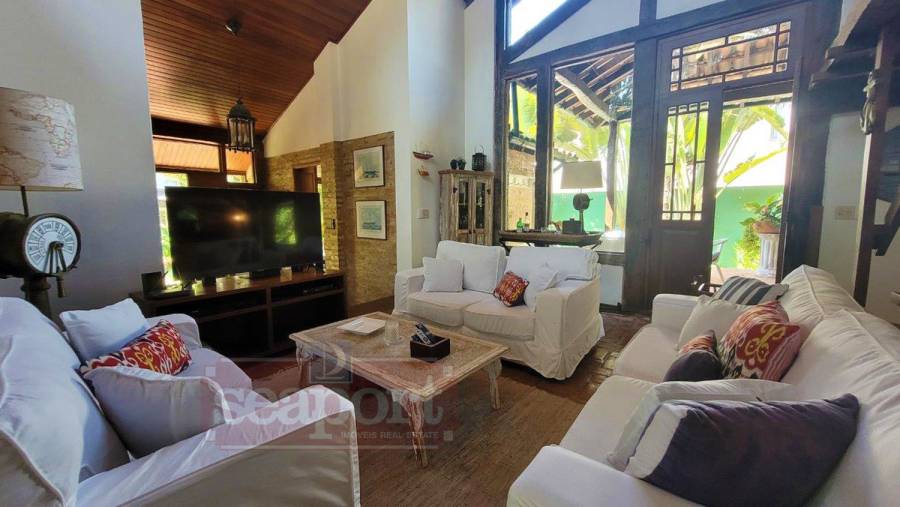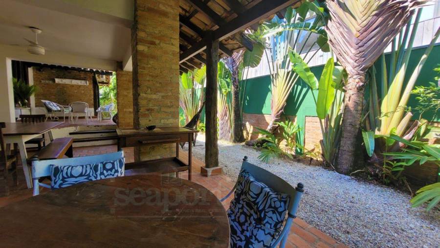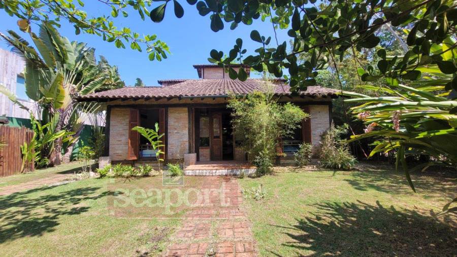 Residência charmosa, em condomínio frente ao mar, com 298m² de área construída em terreno privativo de 595m². Possui 4 suítes, sendo 2 no andar térreo, salas de estar, tv e jantar, cozinha, varanda com varios ambientes, chuurrasqueira, dependencia de funcionario, jardim e vaga para 4 autos.