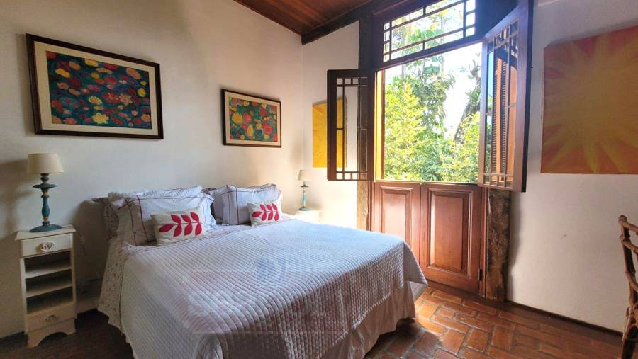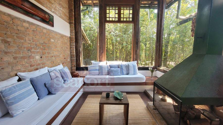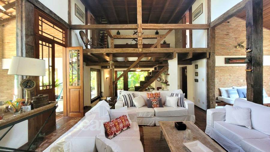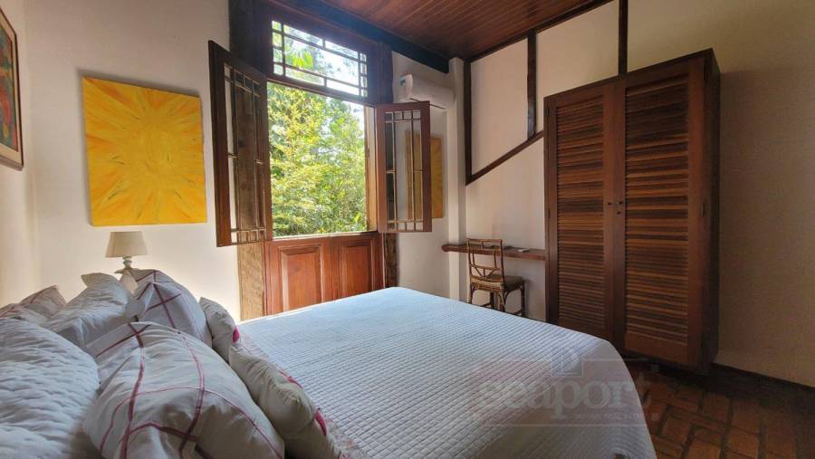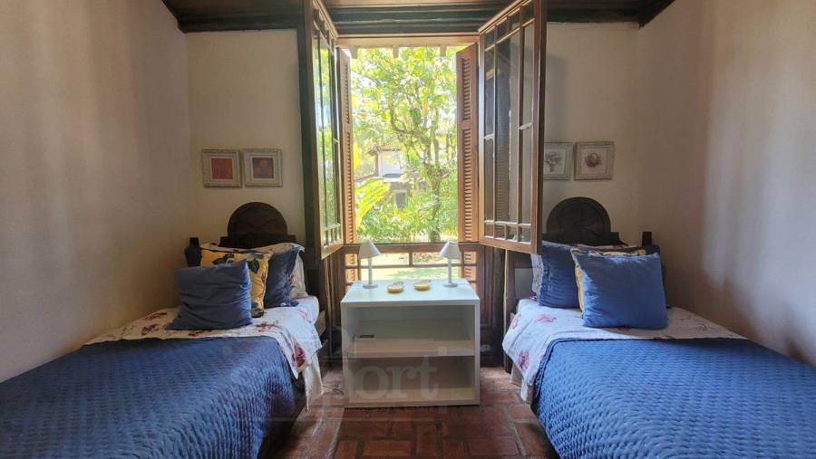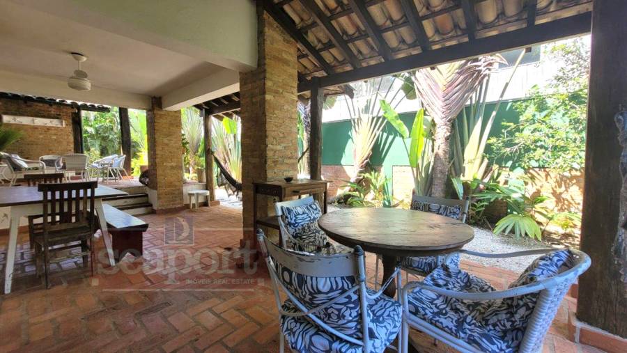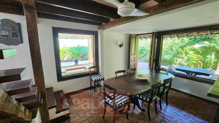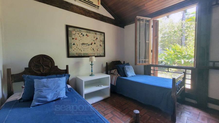 Residência charmosa, em condomínio frente ao mar, com 298m² de área construída em terreno privativo de 595m². Possui 4 suítes, sendo 2 no andar térreo, salas de estar, tv e jantar, cozinha, varanda com varios ambientes, chuurrasqueira, dependencia de funcionario, jardim e vaga para 4 autos.