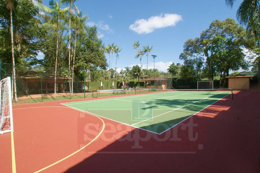 O condomínio possui piscina, quadra de tênis e sauna