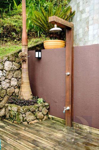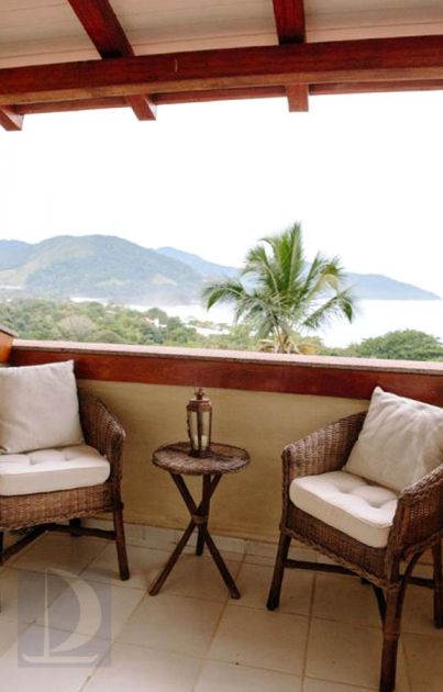Residência com vista para o mar em Cambury, à 100m da praia, com 141m² de área construída, com fração ideal de 487m². Possui 3 suítes, salas de estar, jantar e tv, cozinha, varanda com churrasqueira, jacuzzi e vaga para 2 autos. Tem internet
