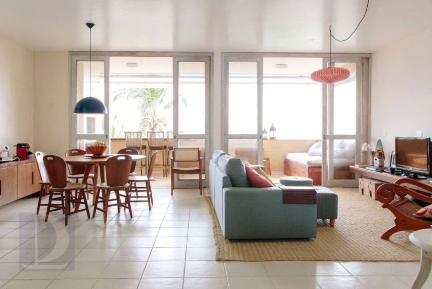 O condomínio possui: piscina com deck, serviço de praia com cadeiras e guarda-sol e portaria com segurança 24hs
