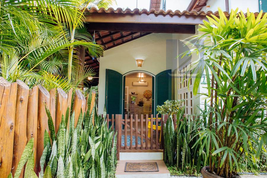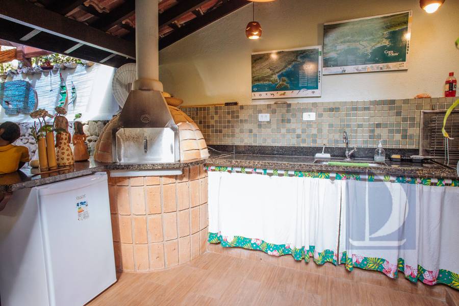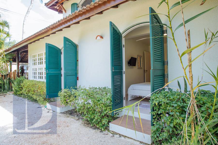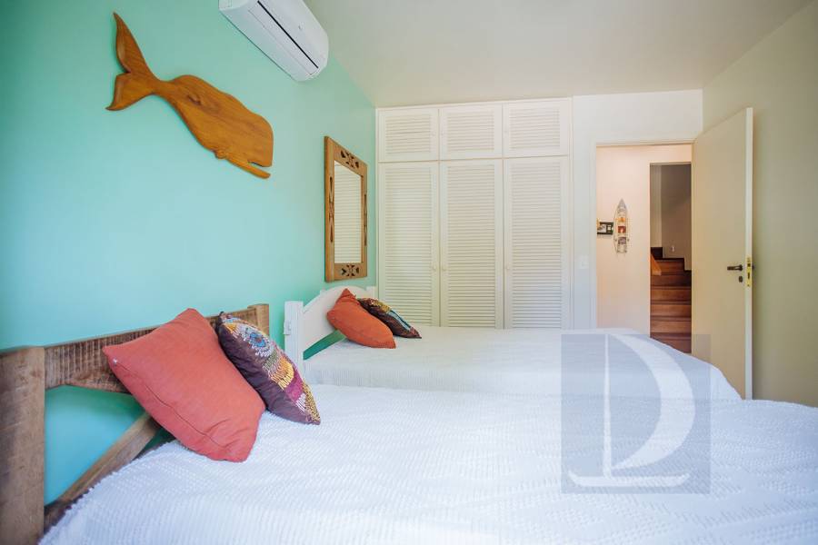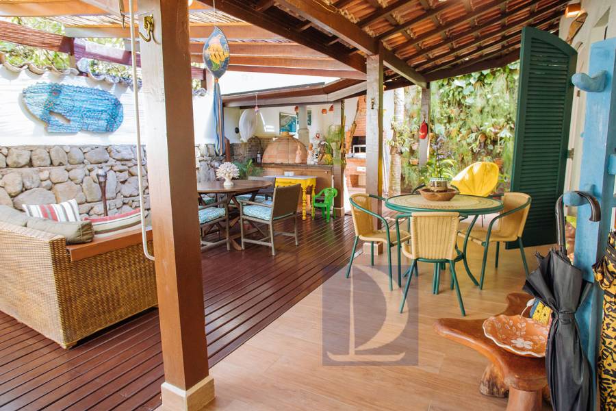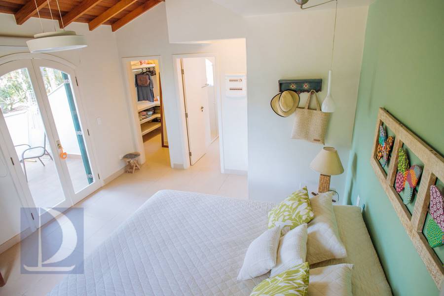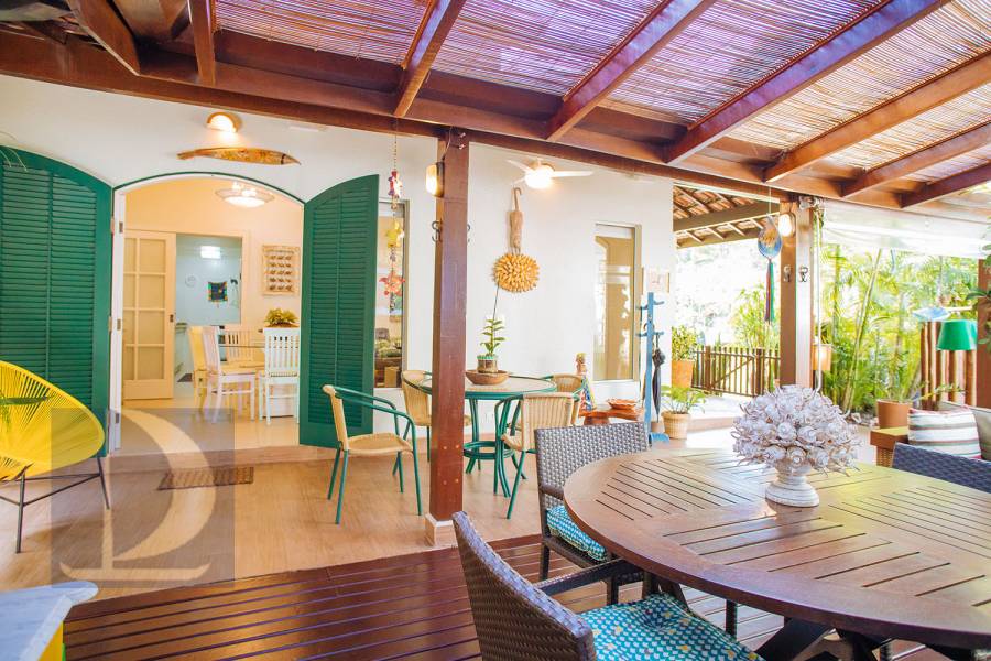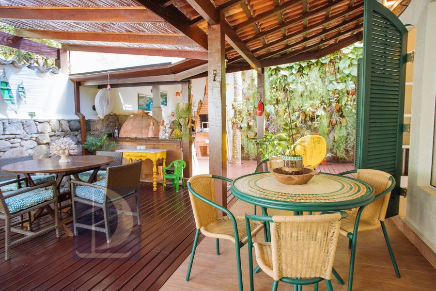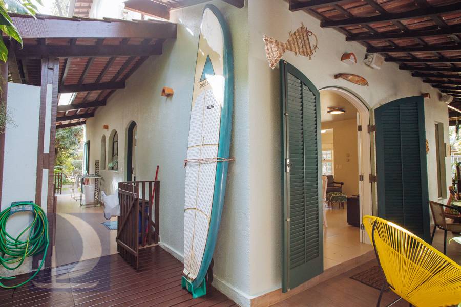 Residência em condomínio fechado à 80m da praia, com ~200m² de área construída, em fração ideal de terreno 400m². Possui 5 dormitórios, sendo 4 suítes, salas de estar, jantar, cozinha, varanda, jacuzzi, sauna, churrasqueira, forno de pizza, vista para o mar e estacionamento para 2 autos
