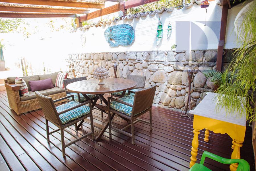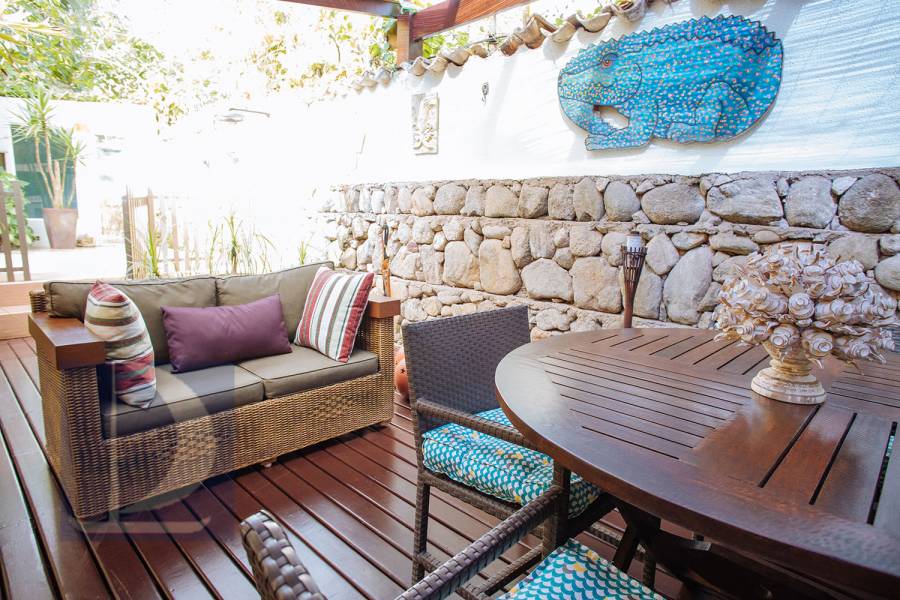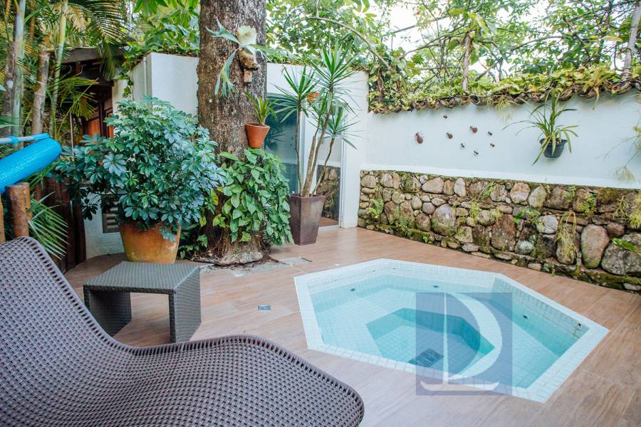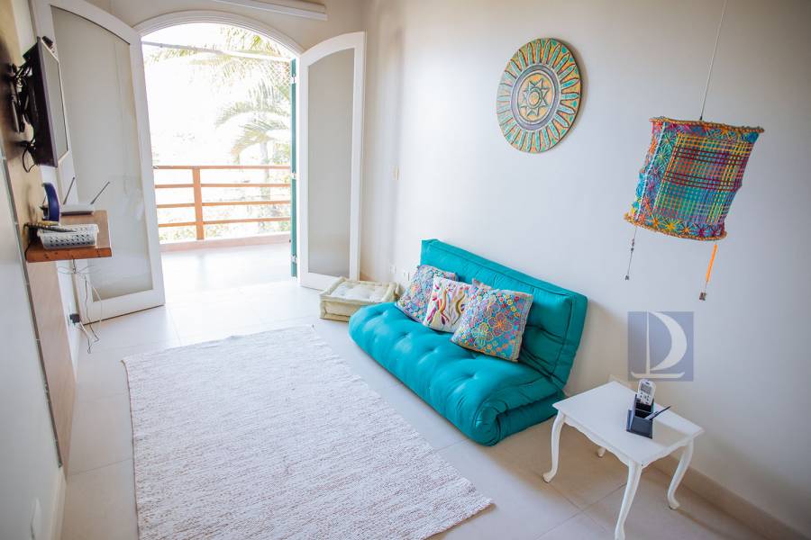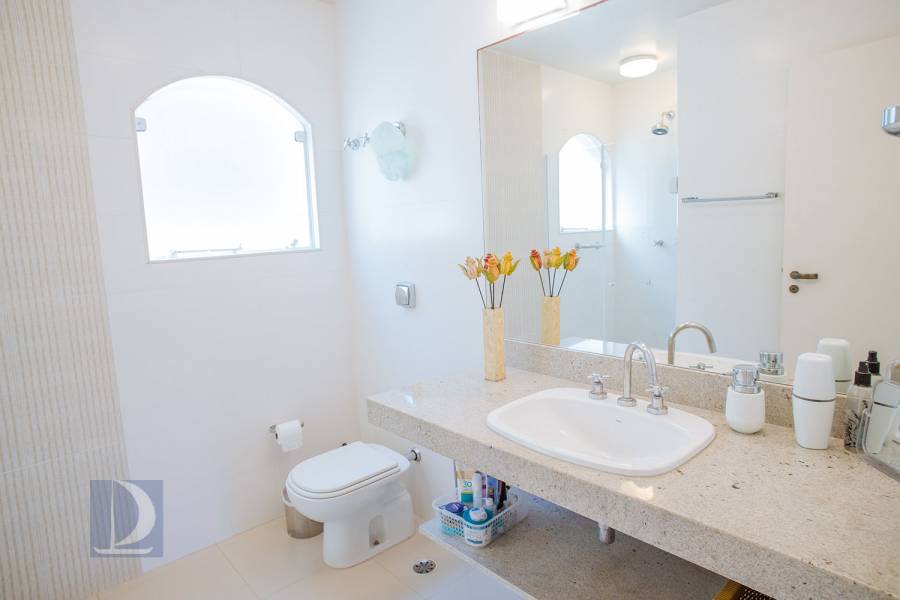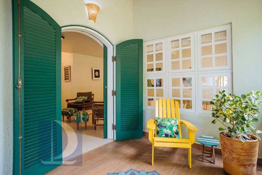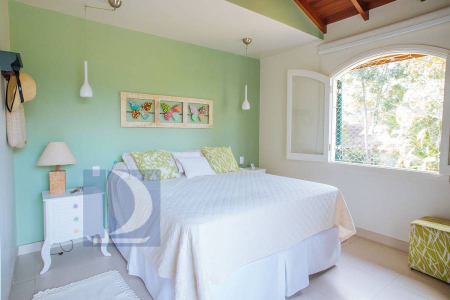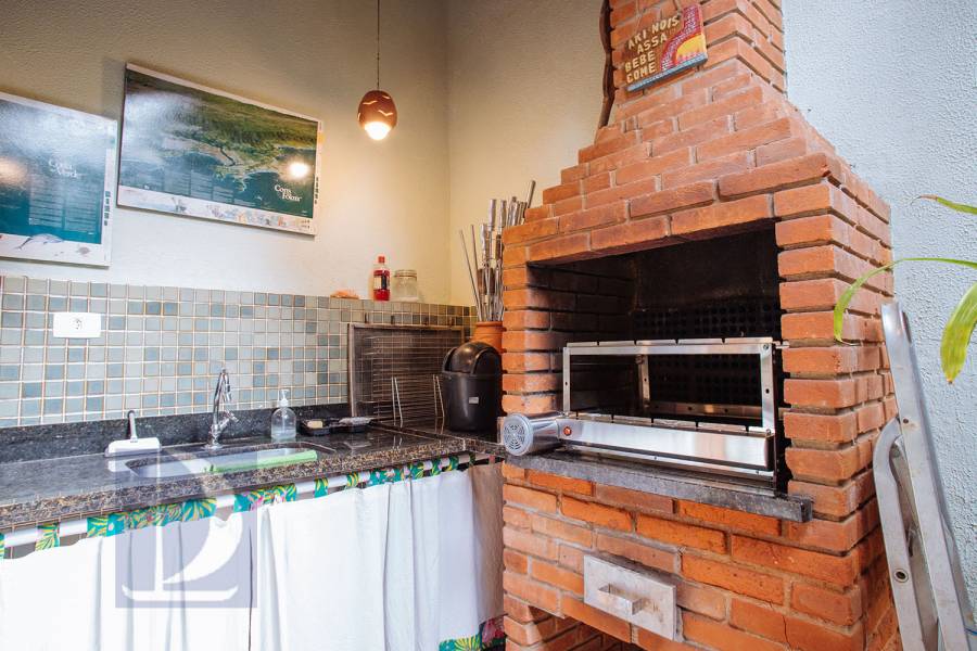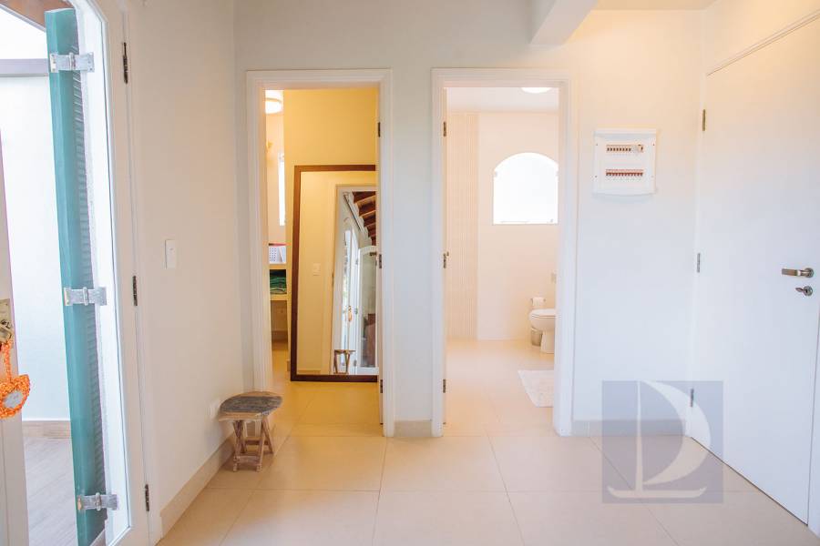Residência em condomínio fechado à 80m da praia, com ~200m² de área construída, em fração ideal de terreno 400m². Possui 5 dormitórios, sendo 4 suítes, salas de estar, jantar, cozinha, varanda, jacuzzi, sauna, churrasqueira, forno de pizza, vista para o mar e estacionamento para 2 autos