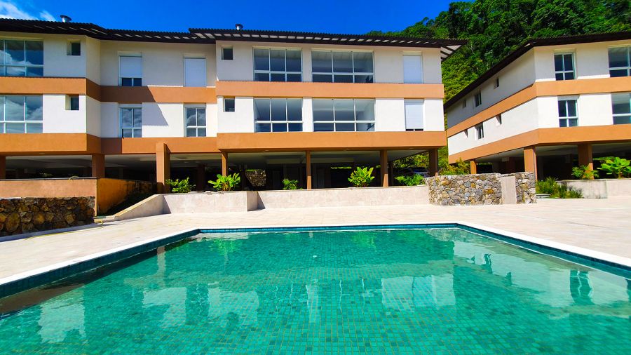 O condomínio possui ~26.850m², piscina adulto bordas infinitas e infantil, quadra de tênis, sauna, ampla quadra de beachtennis e futevolei, sala fitness, pergolados, portarias, recepção, depósitos, terreno sede apoio praia e estacionamento.