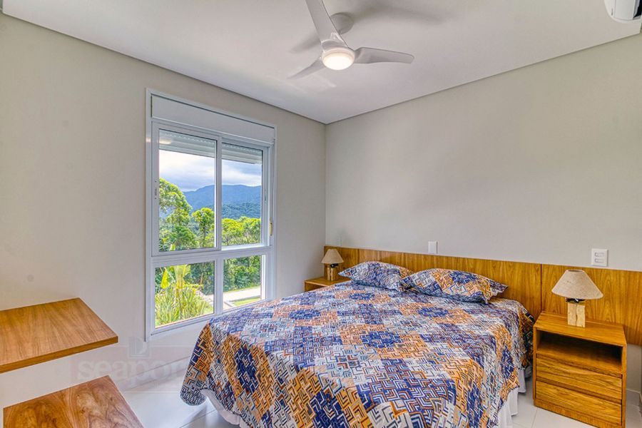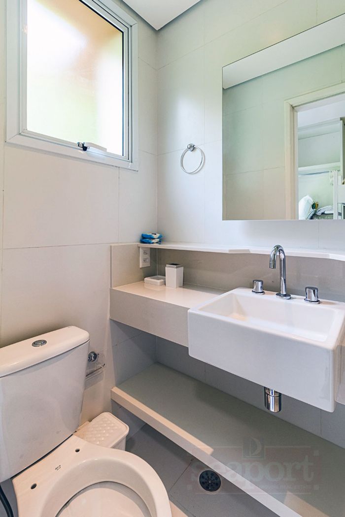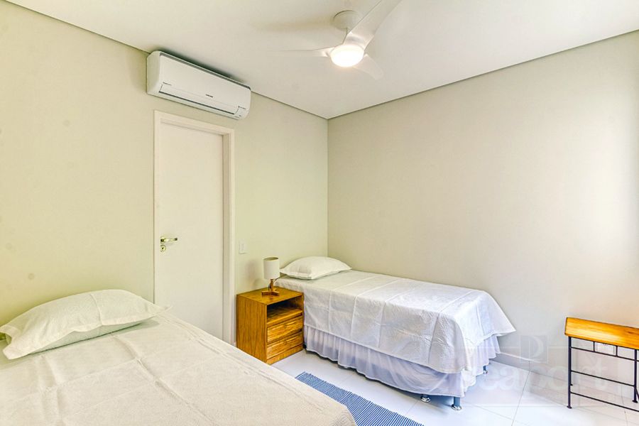 Residência em condomínio fechado à 450m da praia, com 96m² de área construída privatina. Possui 3 suítes, cozinha americana, sala jantar, sala tv e varanda integrada com churrasqueira e vaga p/ 2 autos.