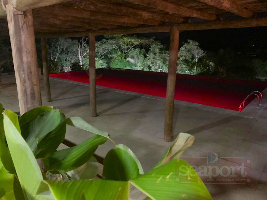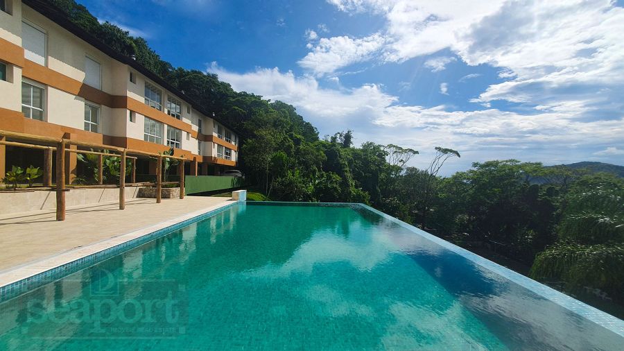 Residência em condomínio fechado à 450m da praia, com 96m² de área construída privatina. Possui 3 suítes, cozinha americana, sala jantar, sala tv e varanda integrada com churrasqueira e vaga p/ 2 autos.