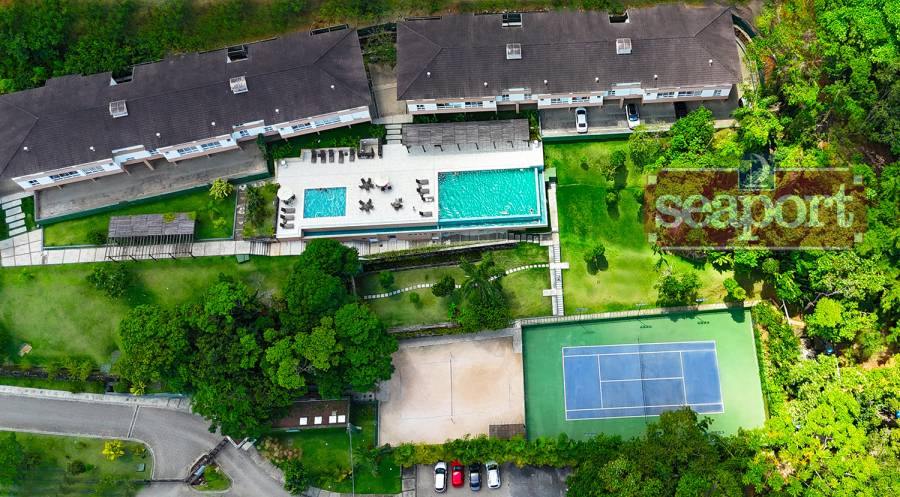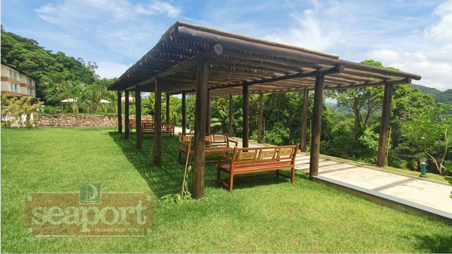 "O condomínio possui 26.850m², piscina com bordas infinitas e infantil, quadra de tênis, saúna úmida, ampla quadra de beachtennis e volei de praia, pergolados, portarias, recepção, depósitos, terreno localizado na rua da praia que serve de estacionamento e