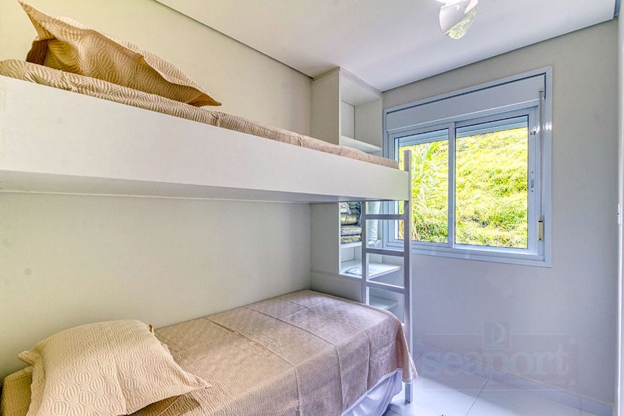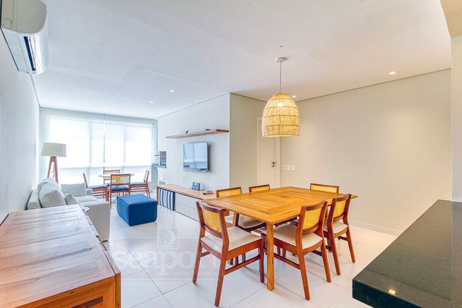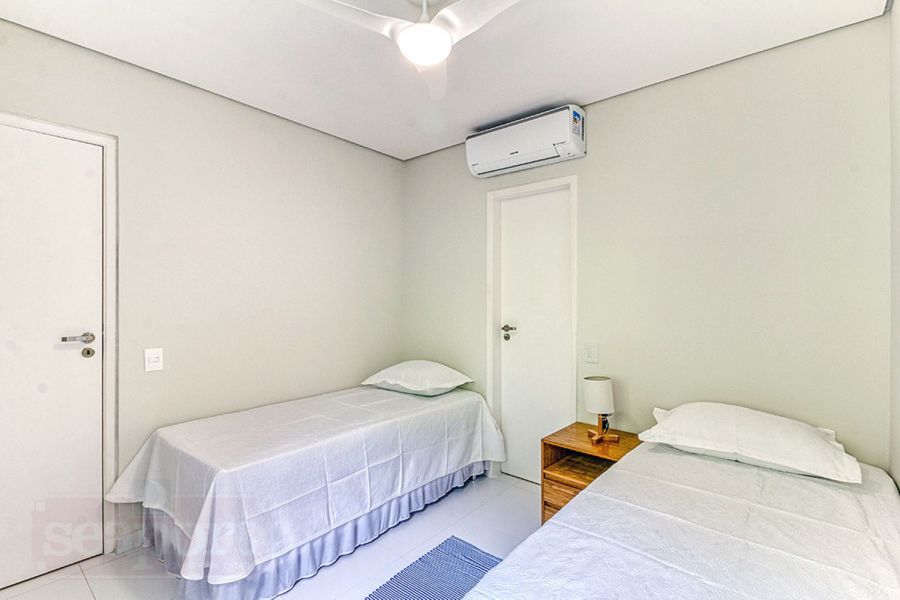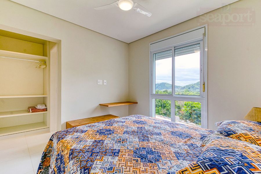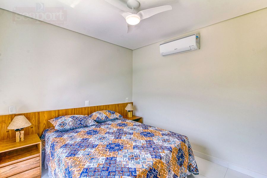 Residência em condomínio fechado à 450m da praia, com 96m² de área construída privatina. Possui 3 suítes, cozinha americana, sala jantar, sala tv e varanda integrada com churrasqueira e vaga p/ 2 autos.