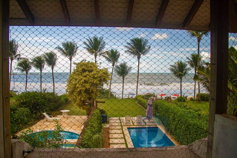 Residência frente ao mar com 345m² de área útil. A propriedade conta com 4 suítes amplas, salas de estar e jantar integradas, cozinha, lavabo e um terraço com vista deslumbrante, piscina privativa, área de serviço completa, casa de caseiro e vagas para 4 autos.