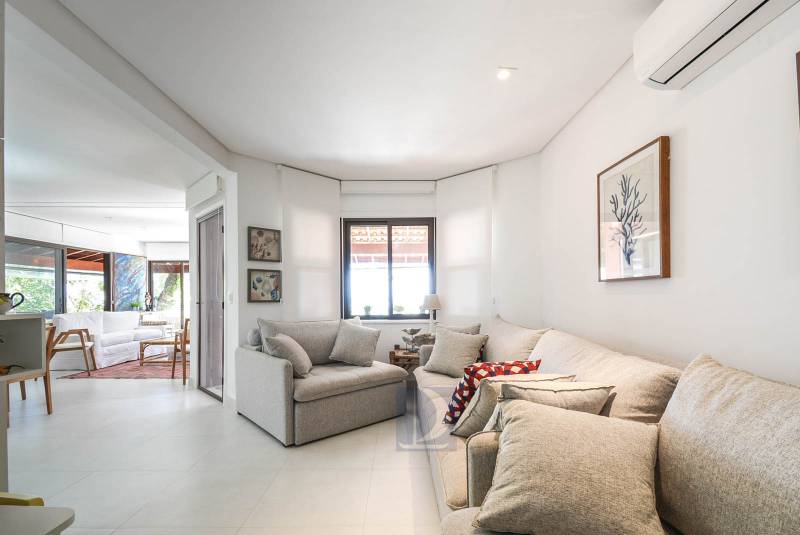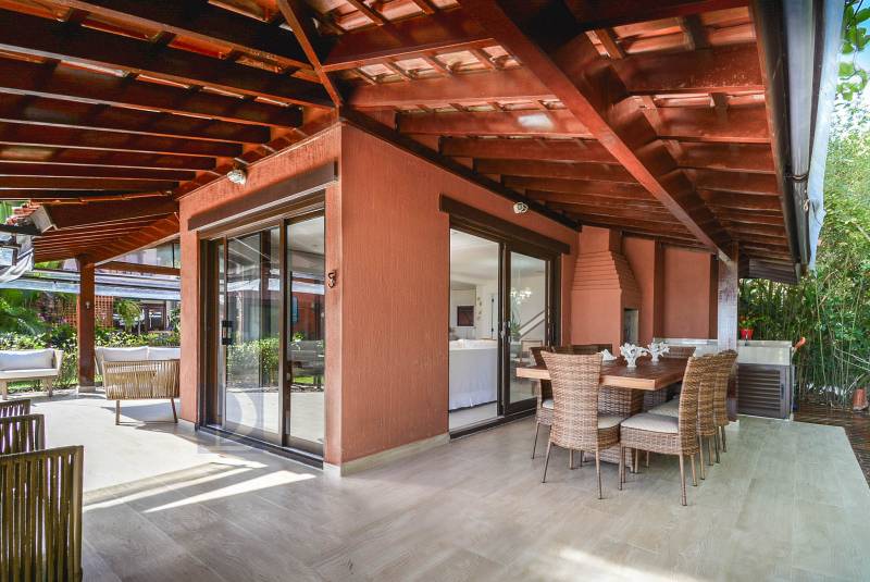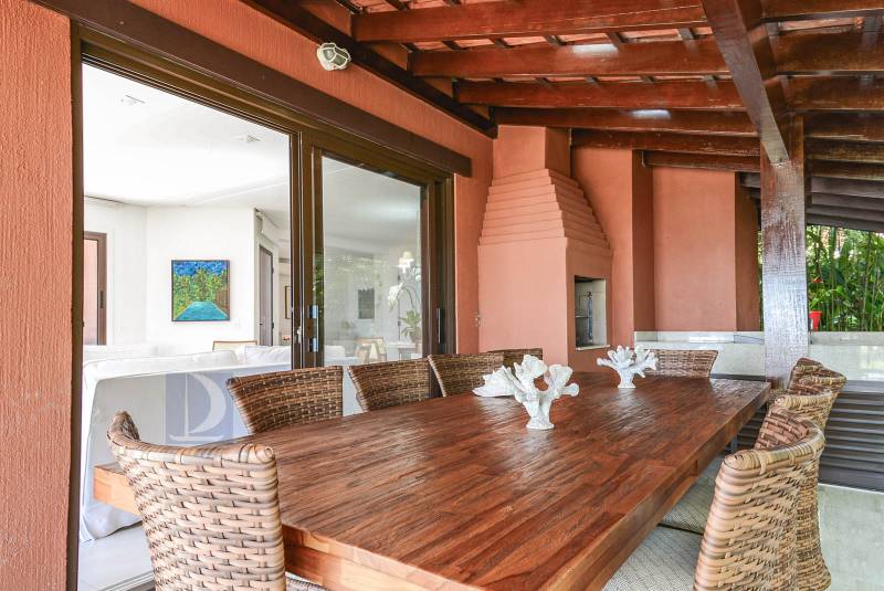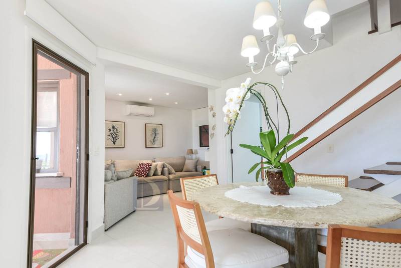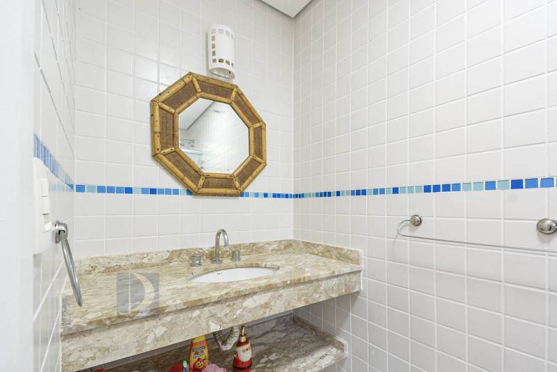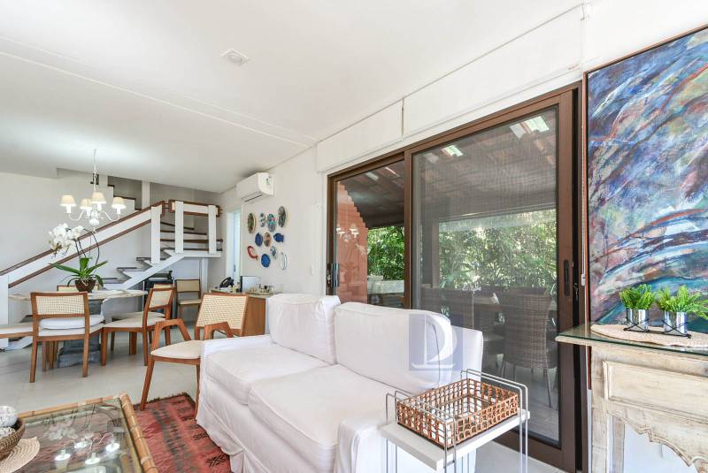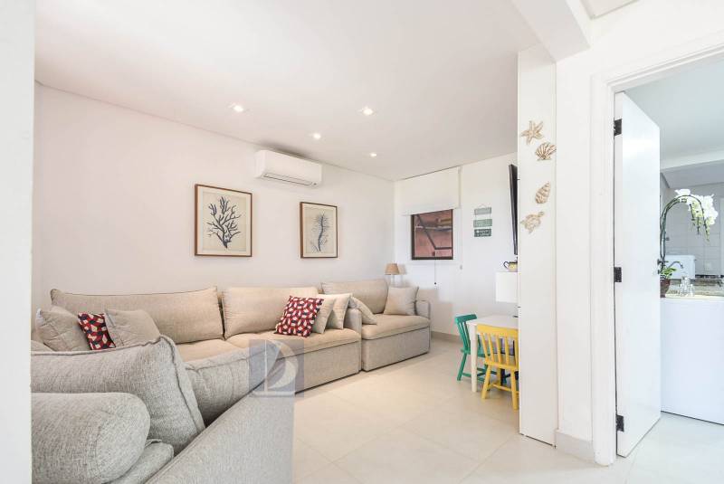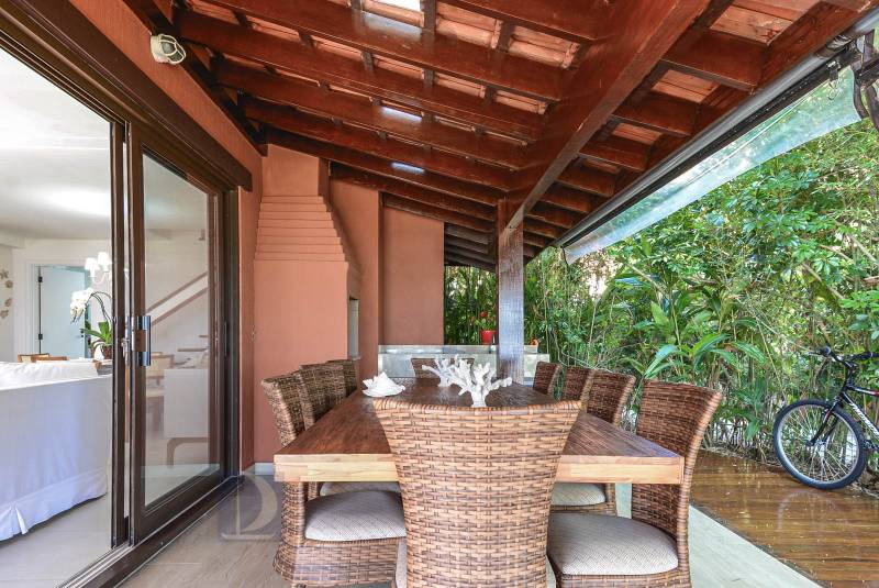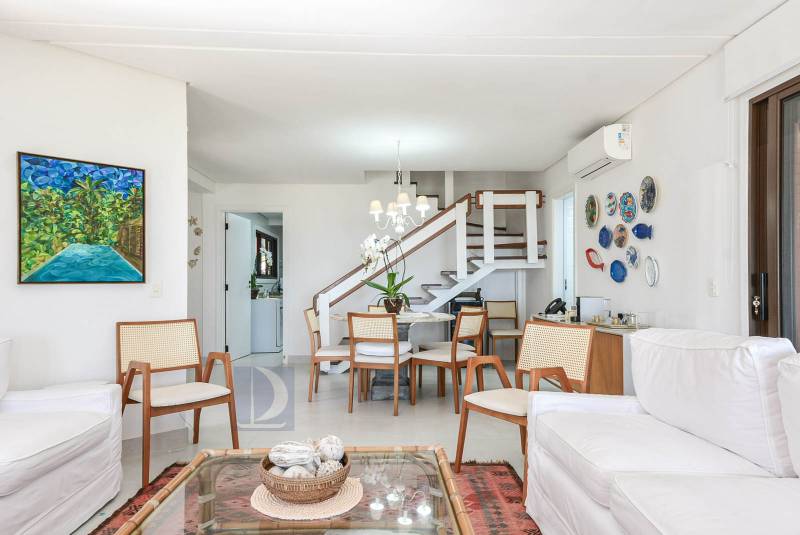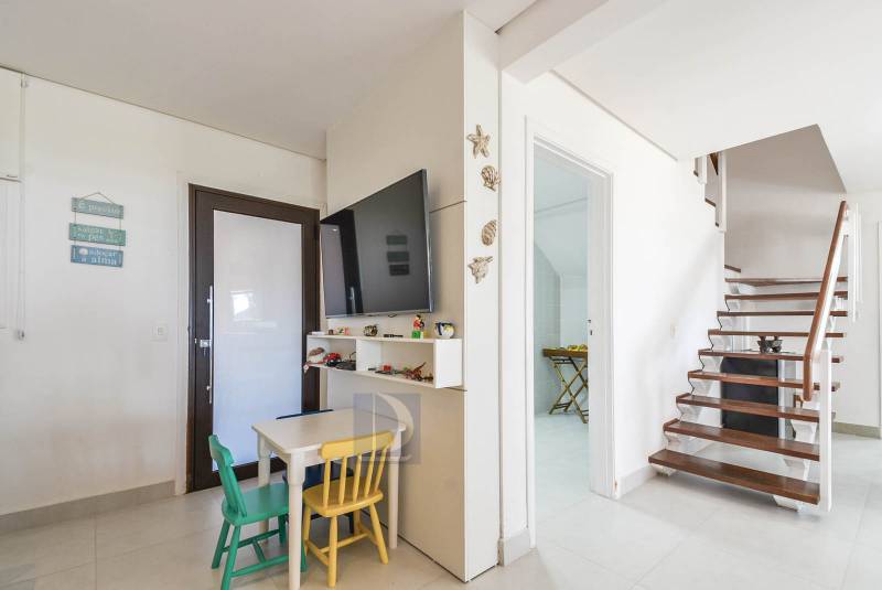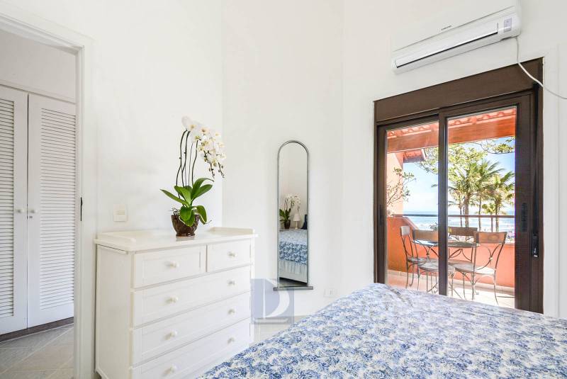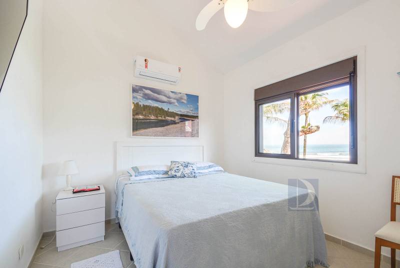 Residência em condomínio fechado frente para o mar com 250m² de área construída, em fração ideal de terreno com 288m². Possui 5 dormitórios, sendo 2 suítes, sala de estar, jantar, tv, cozinha, dependência de empregada, terraço e vaga para 3 autos.