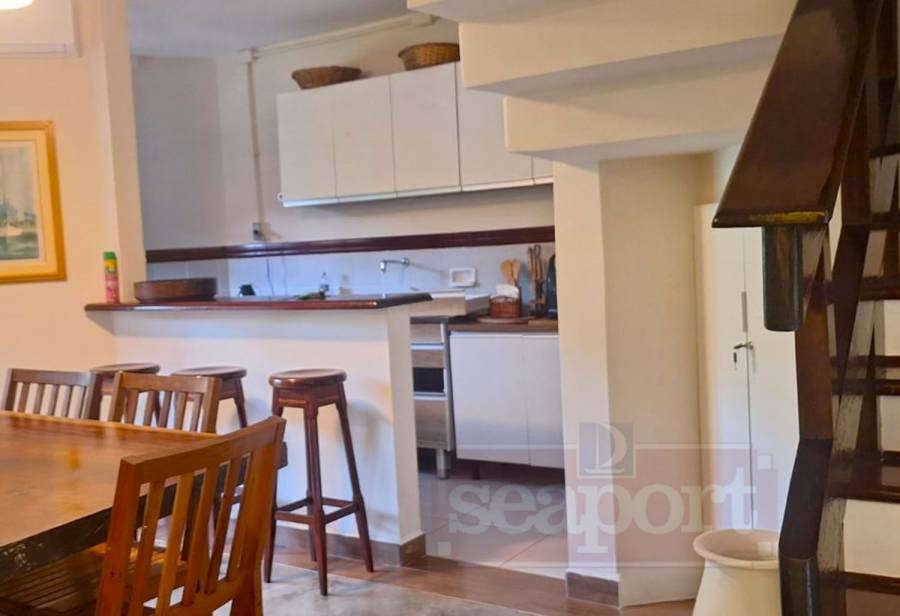 Residencia à 50m de distancia da praia, com 75m² de área construída, com 2 dormitórios, 2 wc, sala de jantar, sala de estar, cozinha americana, varanda com churrasqueira, estacionamento para 1 auto