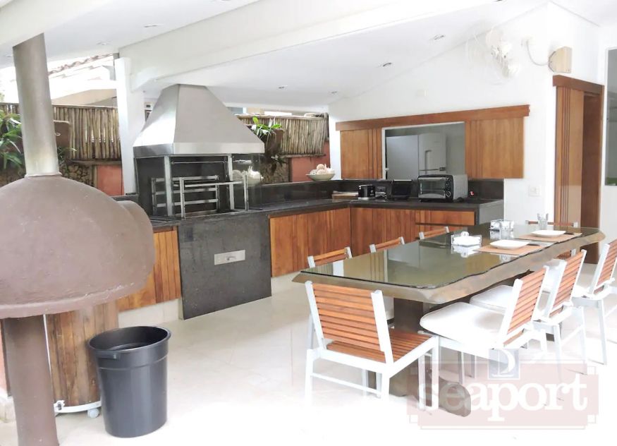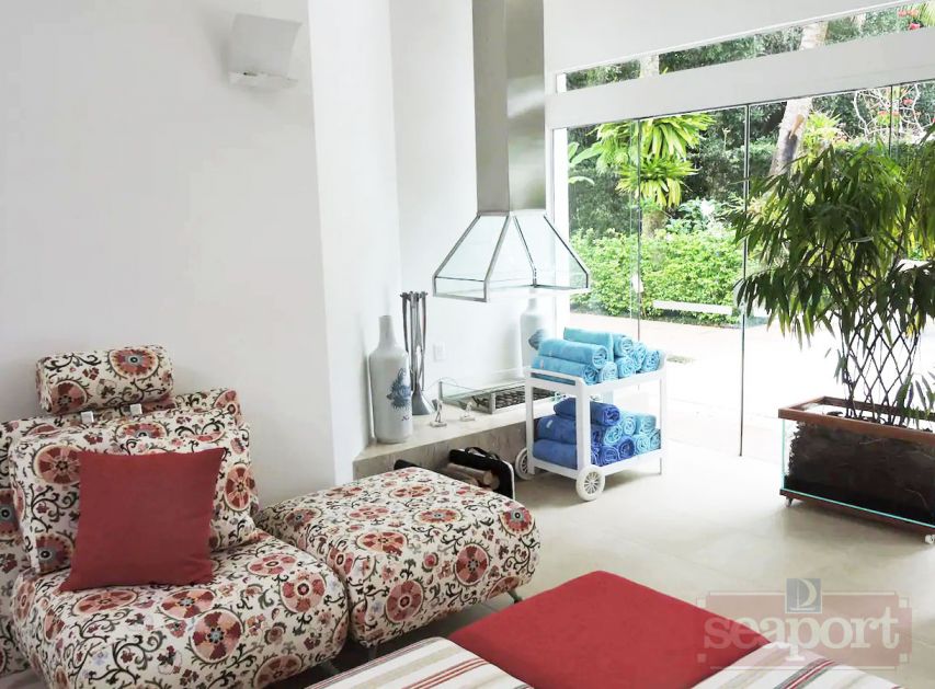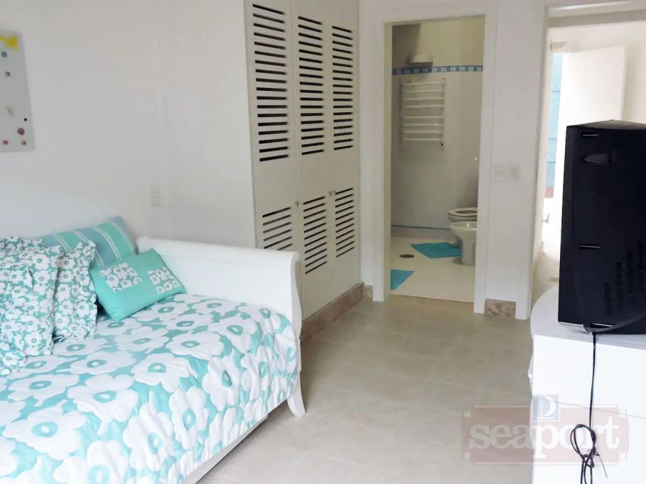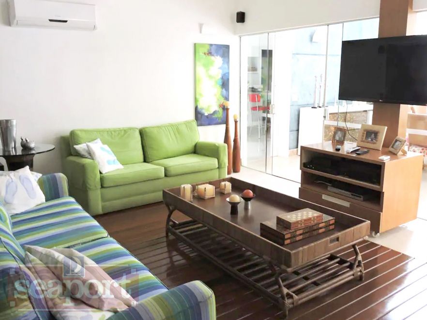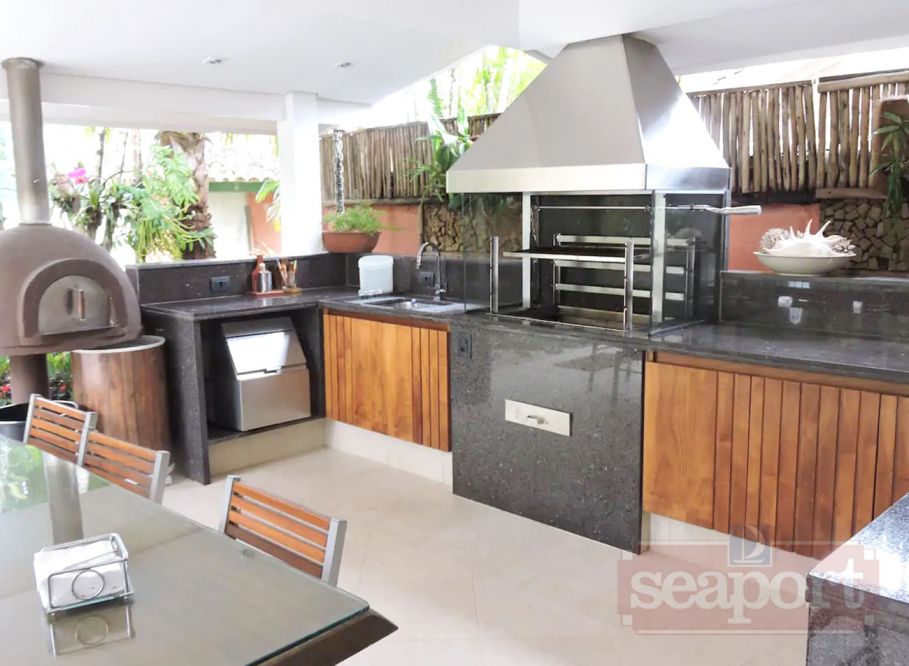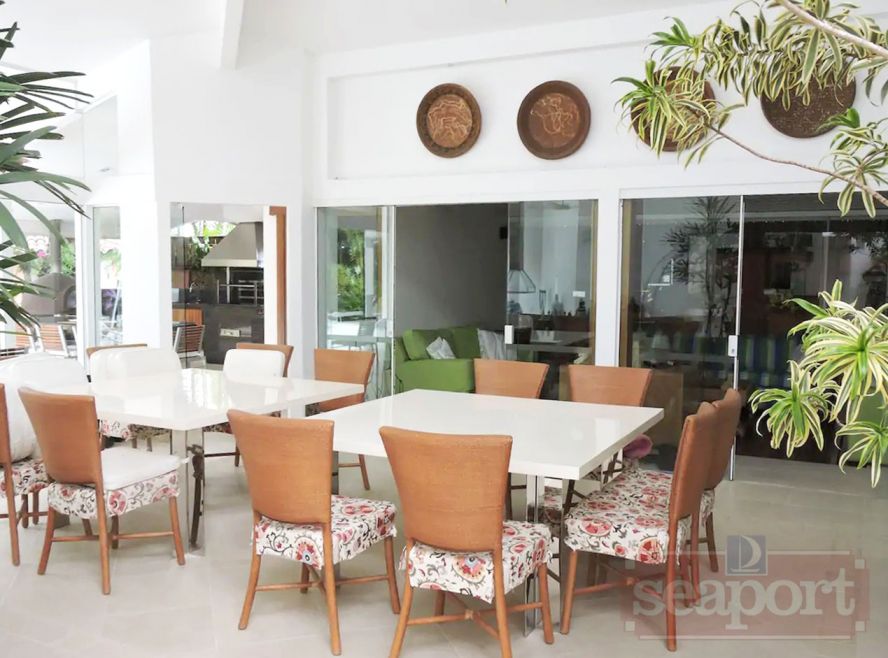 Residência em condomínio fechado à 350m da praia, com área construída de 350m² em fração de terreno de 1.250m². Possui 5 suítes, salas de estar, jantar e de tv, cozinha,cozinha de apoio externa, varanda com espaço gourmet, área de serviço, dependência de empregada e vaga para 2 autos.