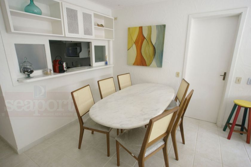 O condomínio possui piscina com banheiros e chuveirão, deck com cadeiras, quiosques e playground frente ao mar com chuveirão e banheiros, quadra de tênis, sauna úmida, sala fitness, espaço gourmet e solário frente ao mar, restaurante que serve café da manhã nos finais de semana, feriados e temporada, serviço de praia com 4 cadeiras, mesinha e guarda sol, portaria funciona 24 horas com 16 câmeras de segurança. Portaria formece pacote de gelo.