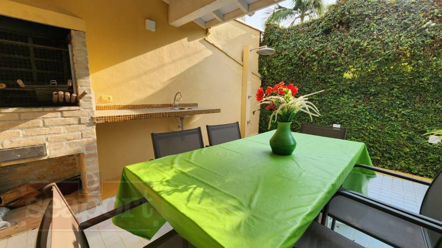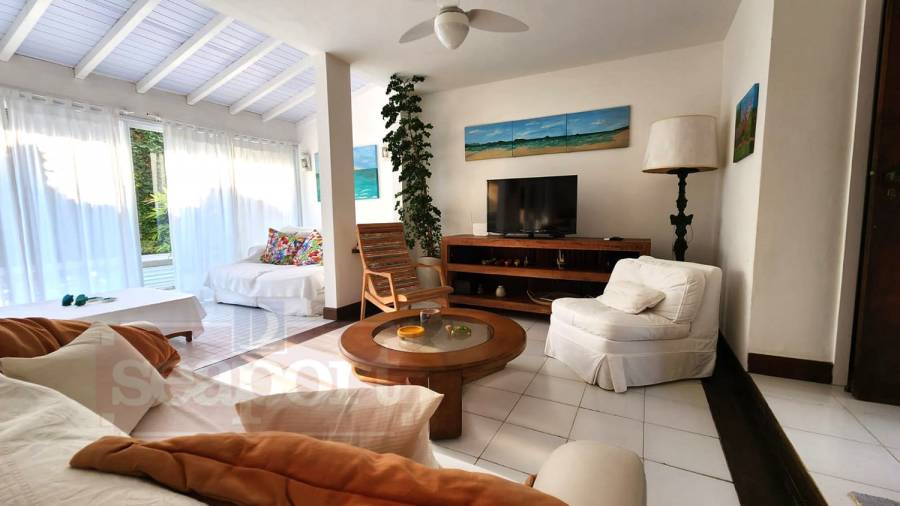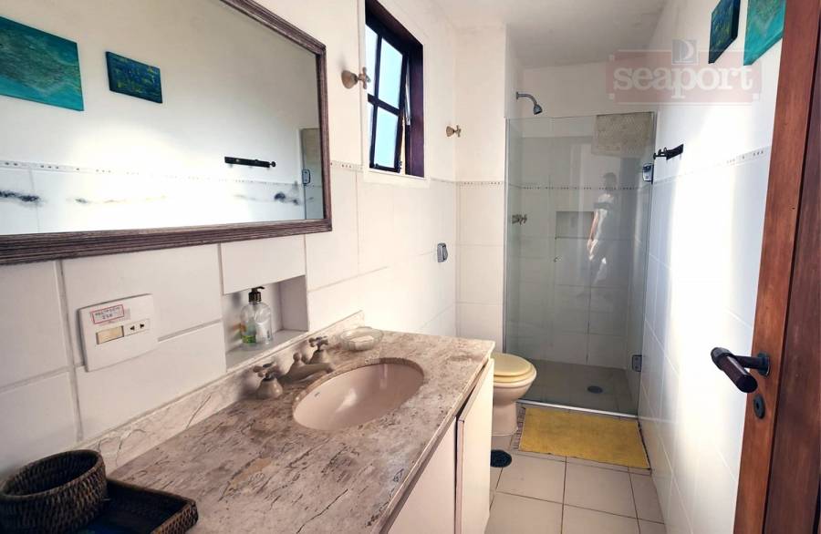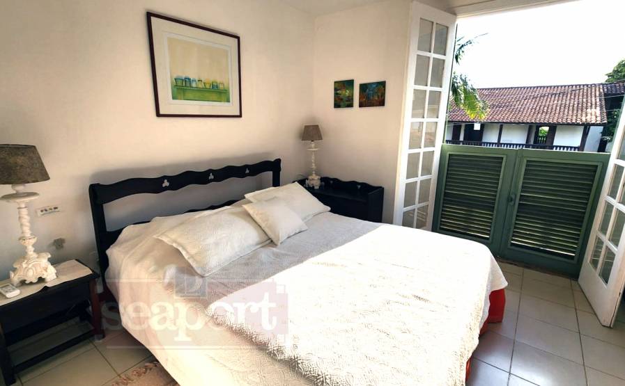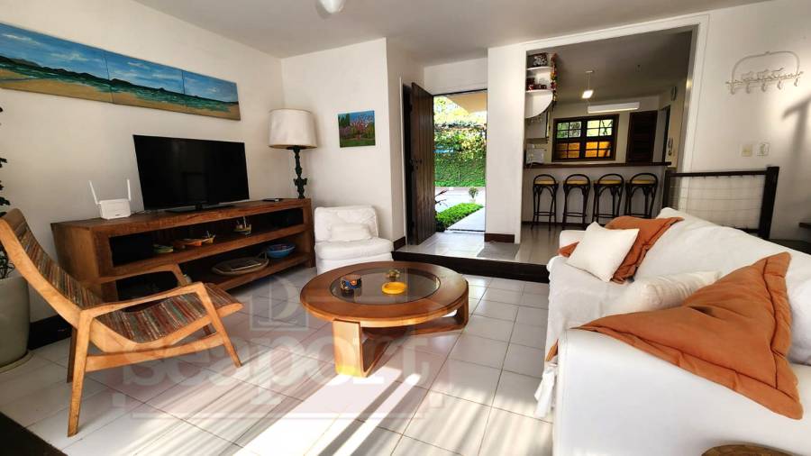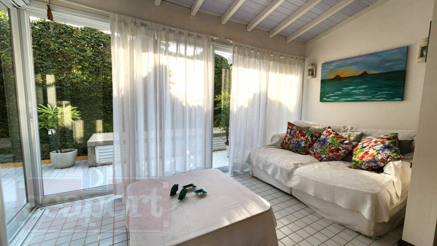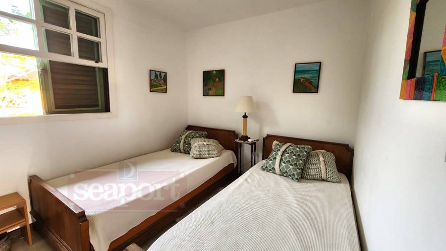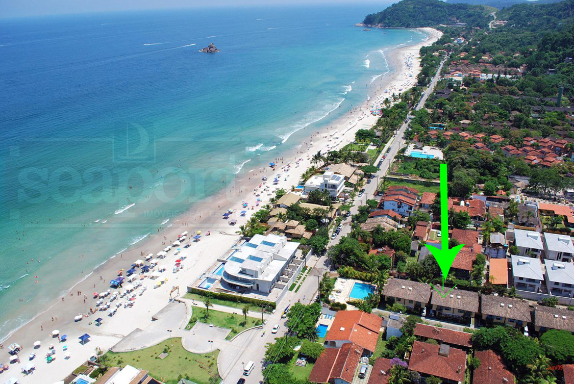 Residência em condomínio fechado à 50m da Praia de Juquehy com 150m² de área construída, em fração ideal de terreno com 280m². Possui 4 dormitórios, sendo 2 suítes, sala de estar, jantar e TV, cozinha americana, área de serviço, varanda, churrasqueira e vaga para 2 auto.