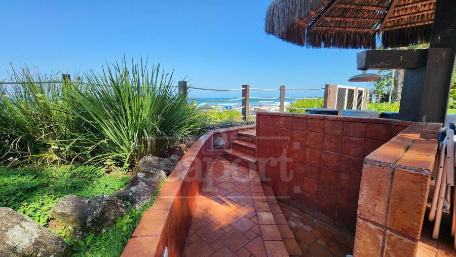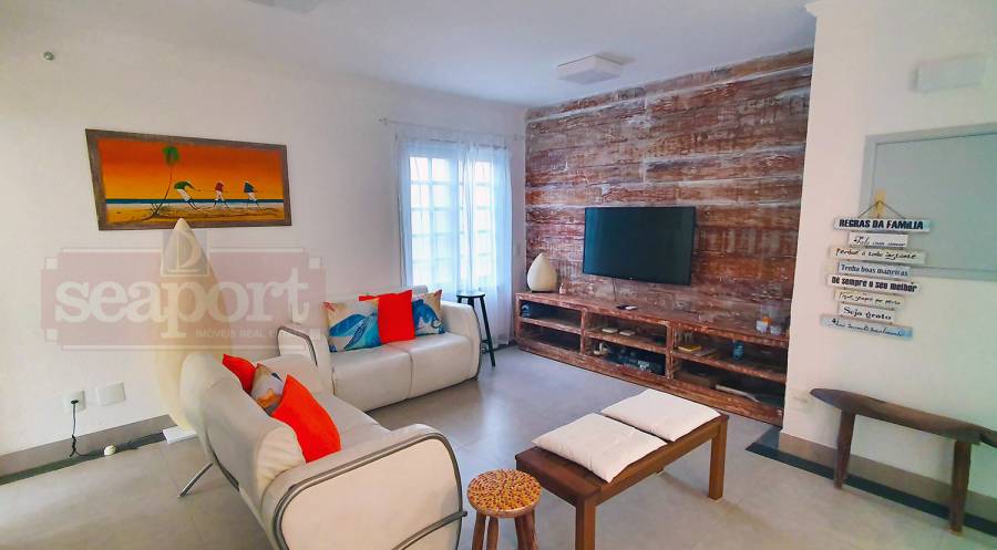 Residência em condomínio fechado de frente ao mar, com ~140m² de área constuída em fração de terreno de 341m². Possui 4 dormitórios sendo 2 suítes, sala de estar e jantar, lavabo, cozinha, área de serviço, 2 vagas de auto.
