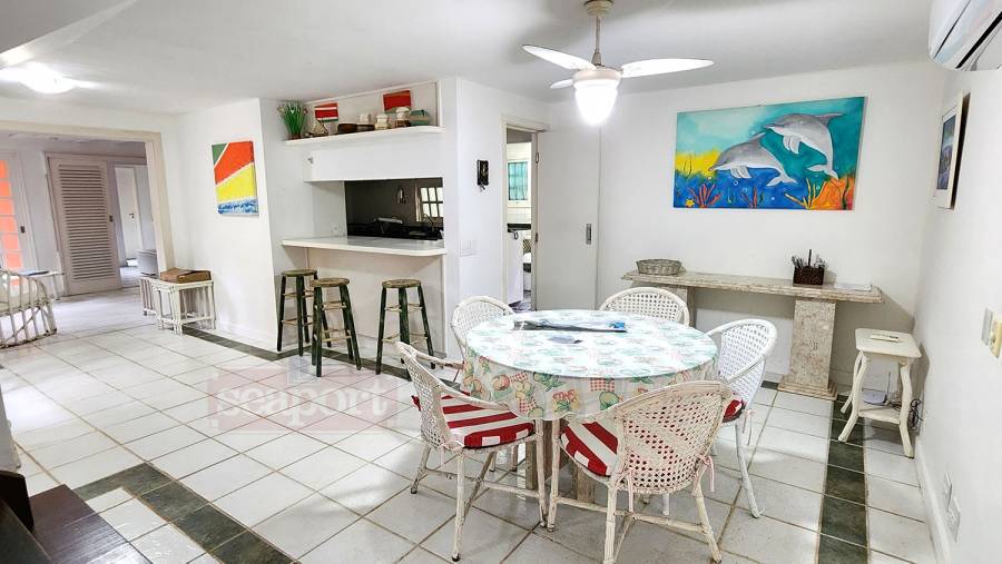 Residência em condomínio frente ao mar na Praia de Juquehy com 220m² de área construída. Possui 4 dormitórios, sendo 1 suíte, mezanino, sala de estar e jantar, dormitório de empregada, 3 vagas de estacionamento sendo 1 coberta.