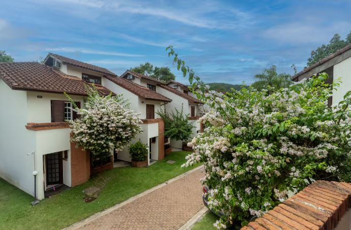 O condomínio possui apenas 10 residências, piscina, sala de jogos e sauna.