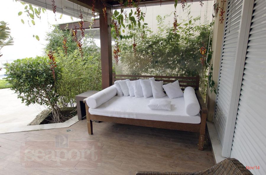 Residência frente ao mar na Praia de Juquehy em condomínio fechado com 239m² de área construída. Possui 5 suítes, sala de estar e jantar, wc social, varanda gourmet, cozinha americana e vagas para 2 autos.