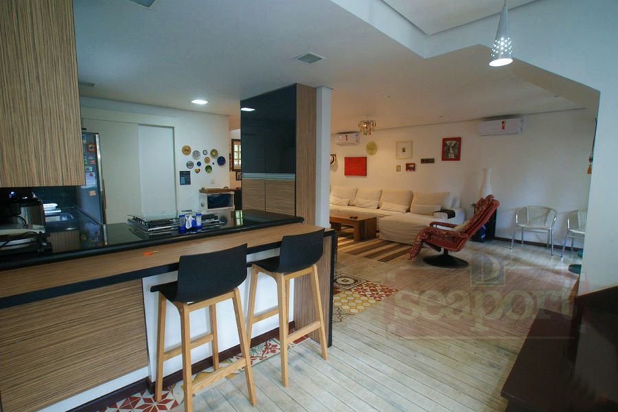 Residência em condomínio frente ao mar em Juquehy com 170m² de área construída. Possui 4 suítes, sala de tv e jantar, cozinha americana, área de serviço e 2 vagas de garagem sendo uma coberta.