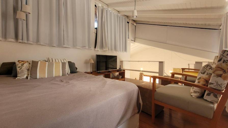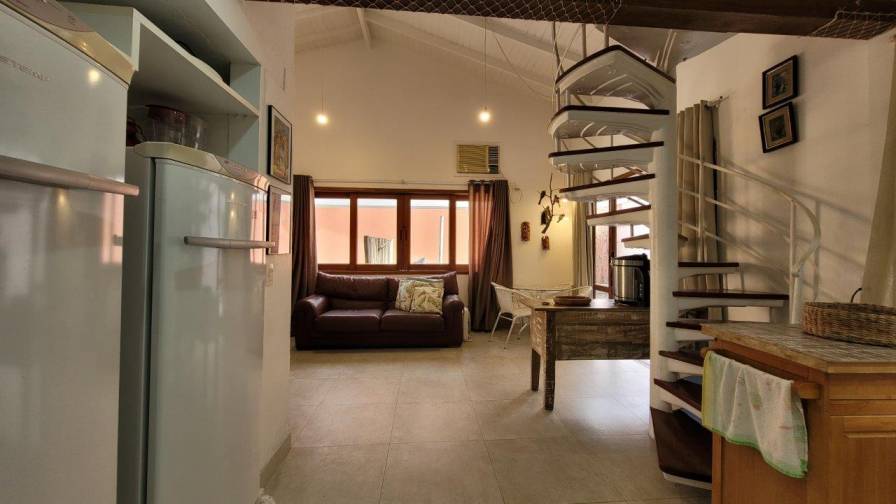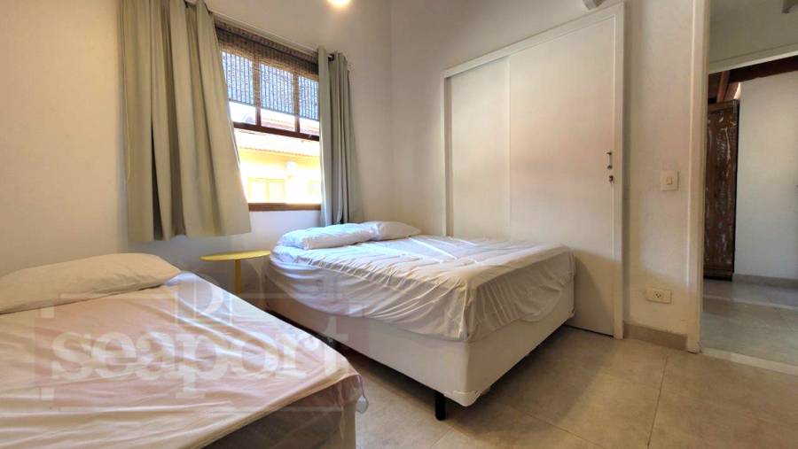 Casa para aluguel em condomínio fechado à 700m da Praia de Juquehy com 121m² de área construída em fração de terreno de 200². Possui 3 dormitórios sendo 1 suíte, sala de estar e de jantar, wc, mezanino/tv, cozinha, varanda com churrasqueira e vaga para 2 autos.