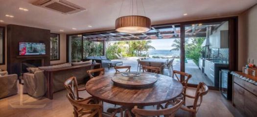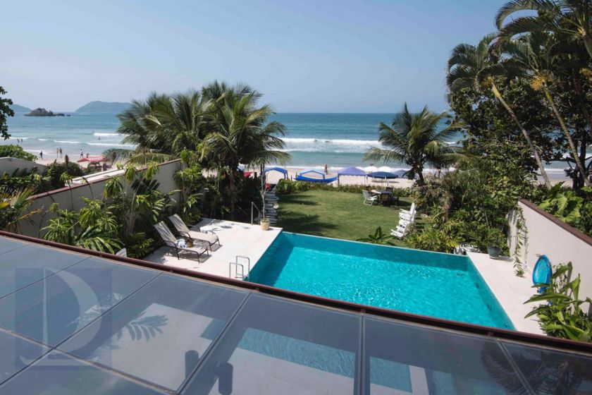 Residência de alto padrão, pé na areia em Juquehy. Possui 6 suítes, sala de estar, tv e jantar, varanda com vários ambientes, piscina com jacuzzi aquecida jardim, churrasqueira a gás, dependência de caseiros e vaga para 4 autos. canto nobre da praia.
