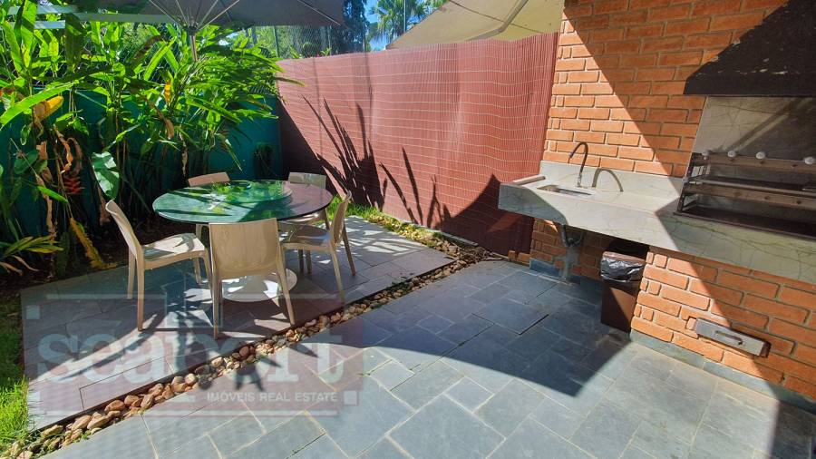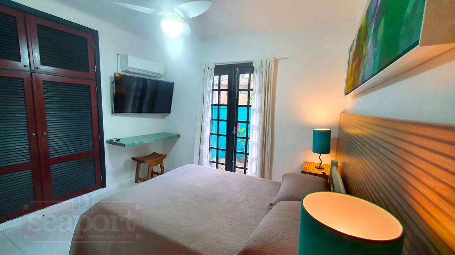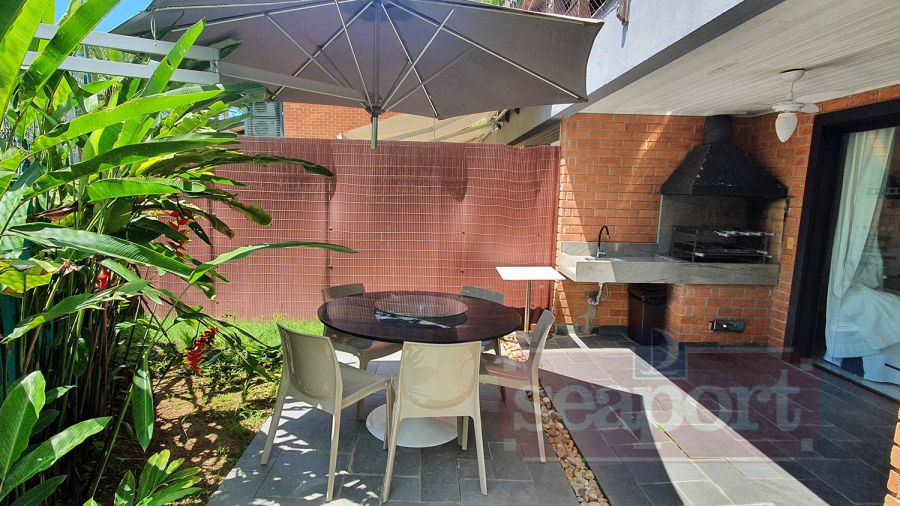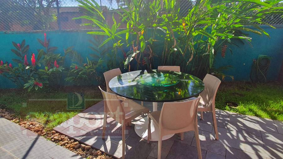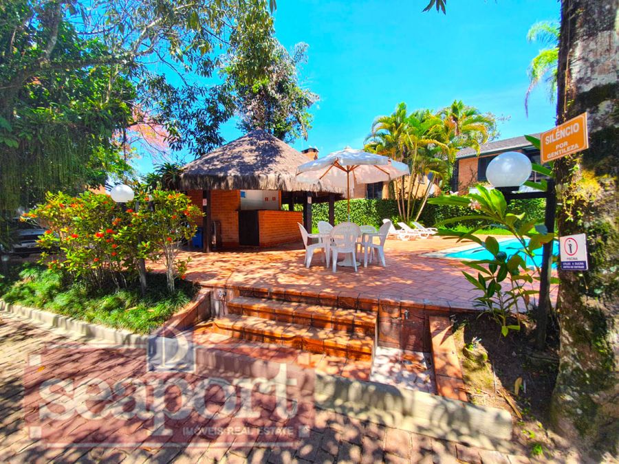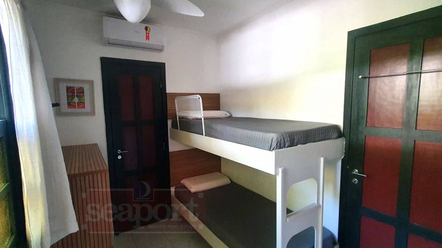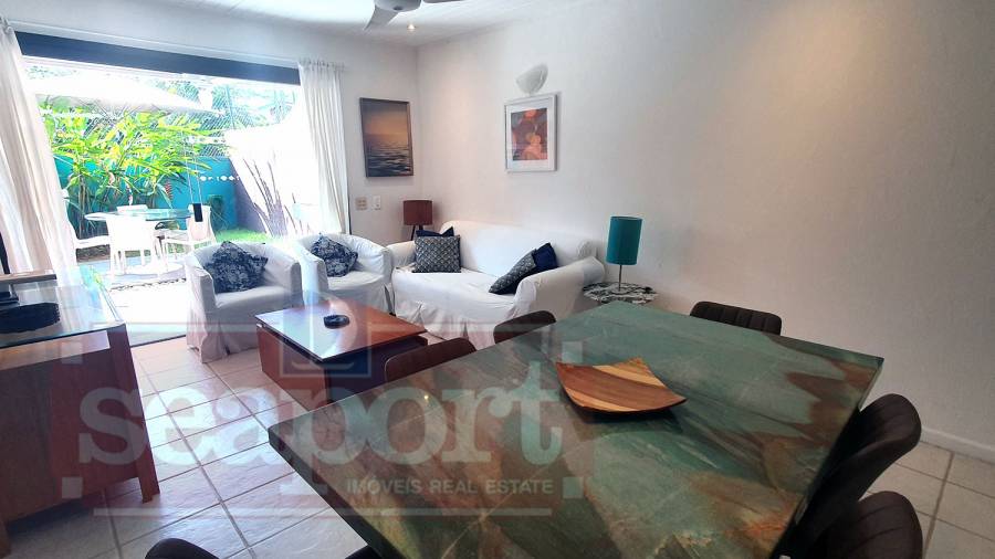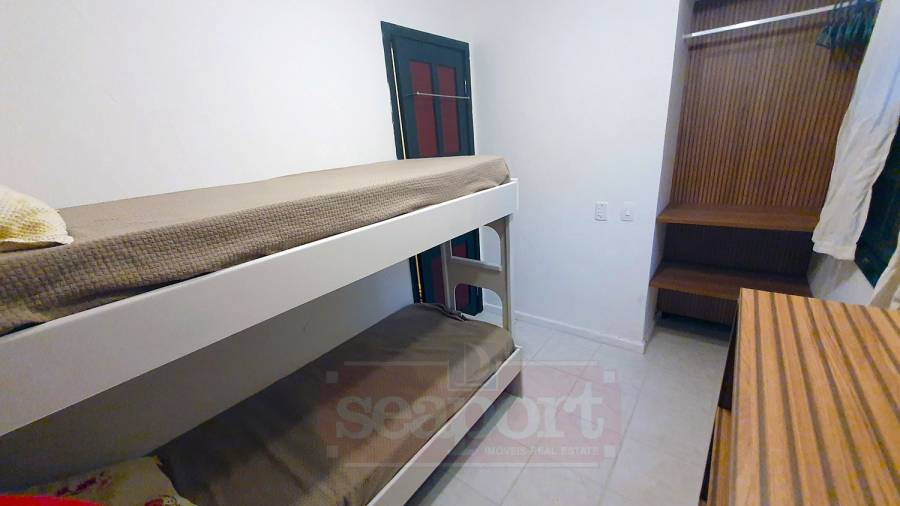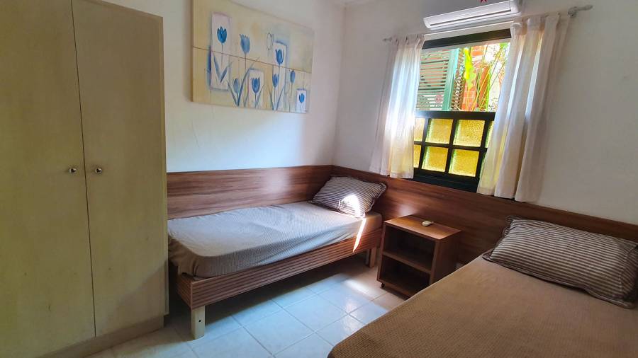 Residência térrea em condomínio fechado de frente para o mar com 80m² de área construída, com 3 suítes, sala estar e jantar, cozinha americana, varanda com churrasqueira, quintal e vaga para 2 autos, sendo uma demarcada, ao lada da entrada da casa e outra nas vagas rotativas do condomínio. Há WiFi na casa e em todo condomínio com velocidade até 100Mb. O condomínio possui área frente ao mar pé na areia com banheiros, chuveirão, quiosque, playground, ombrelones, cadeiras e espreguiçadeiras. Piscina com banheiros, quadra de tênis Play Piso iluminada, sauna, fitness, sala de jogos, brinquedoteca, playground interno, bicicletário, espaço gourmet e solário com vista para o mar, 16 câmeras de segurança, serviço de praia com 4 cadeiras, mesinha e 2 guarda sol, alojamento de funcionários e zeladoria.