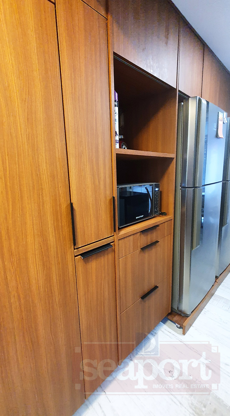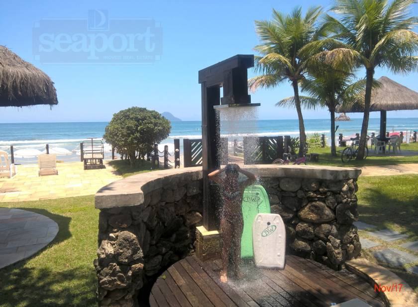 O condomínio possui piscina com deck/bar, deck frente ao mar com quiosques, chuveirão e banheiros, quadra de tênis, sauna, fitness, espaço gourmet e solário/deck com vista para o mar, brinquedoteca, 16 câmeras de segurança, internet Wi-Fi, serviço de praia