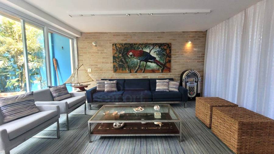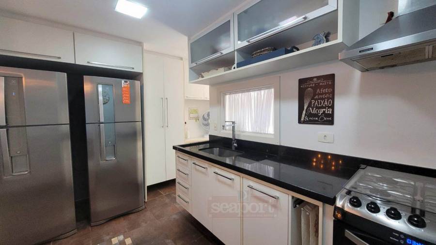O condomínio possui quadra de tênis, jardim pé na areia c/ quiosques, cadeiras, chuveirão frente ao mar, piscina aquecida, serviço de praia, sauna seca e úmida, salão de festa e jogos, fitness, máquina de gelo, 3 captações de água, portaria 24 horas.