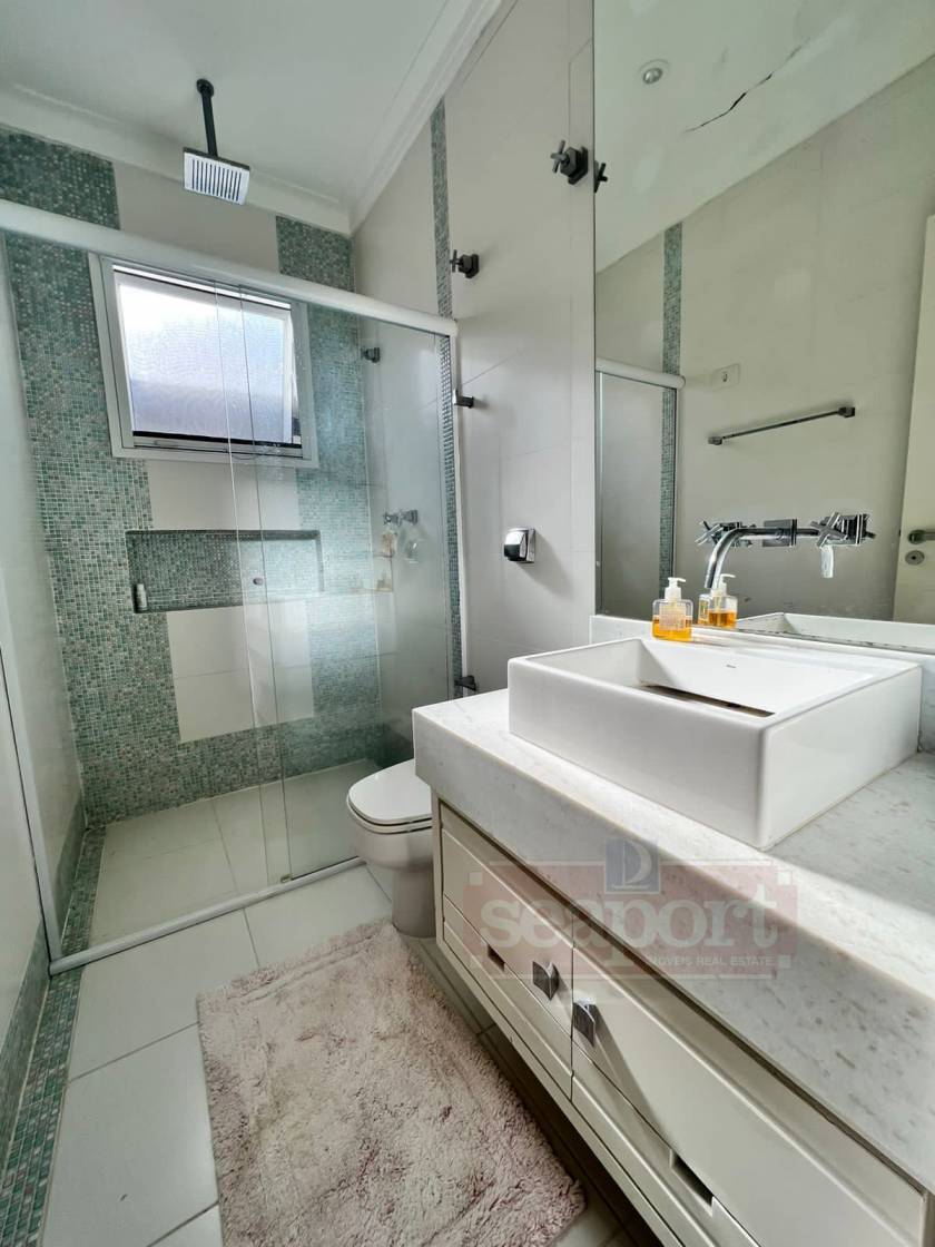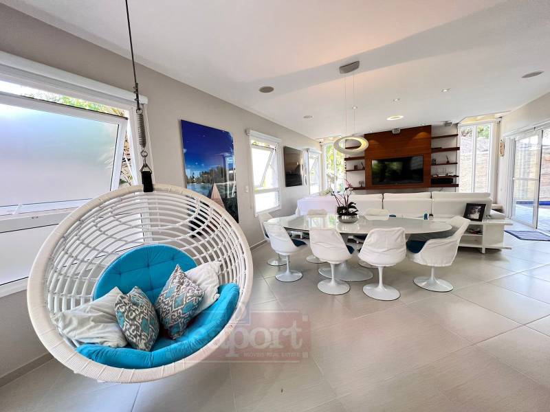 Residência em cond. fechado com 200m² de área construída e fração de terreno de 400m², com 4 suítes, sala de estar e jantar, cozinha americana, dep. de empregada, churrasqueira, piscina privativa, varanda e vaga p/ 2 autos