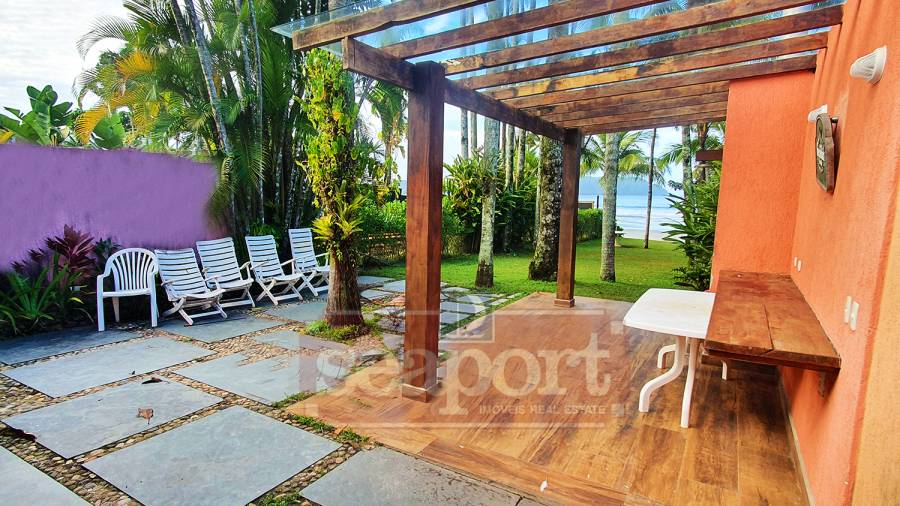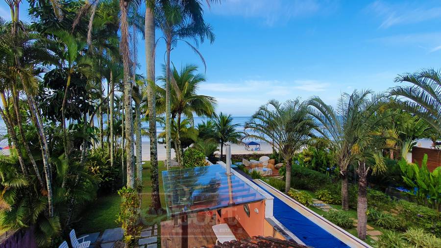 Residência frente ao mar na praia de Juquehy, com 418m² de área construída e 660m² de área de terreno. Possui amplo jardim frente ao mar, varanda, sala de estar, jantar, 5 suítes e área de serviço, casa de caseiros.