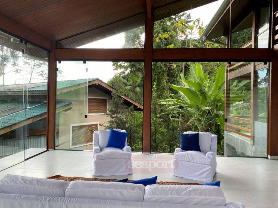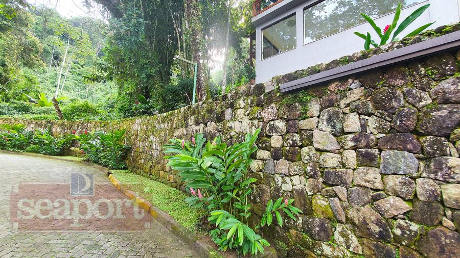 O condomínio no meio da mata atlântica, local alto, constituído por 14 residências isoladas, portaria e zeladoria. As casas possuem área privativa diferentes.