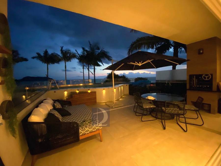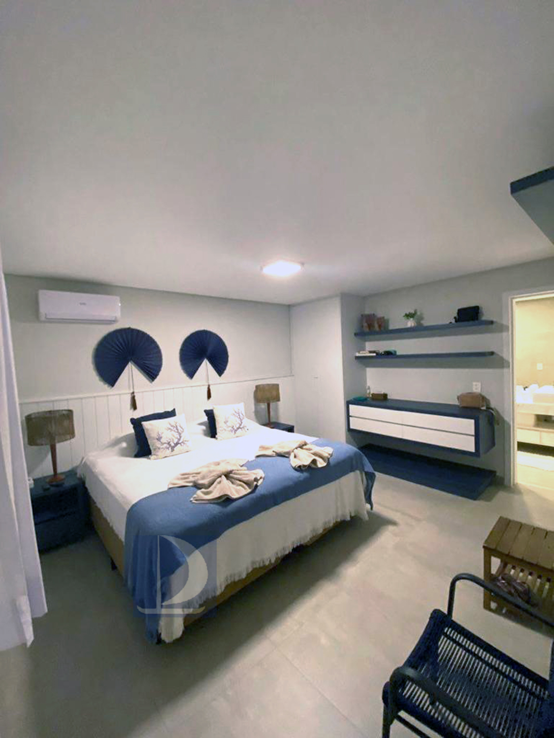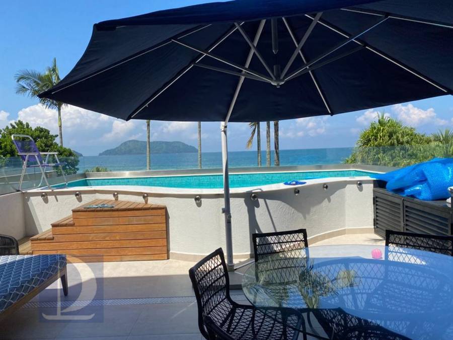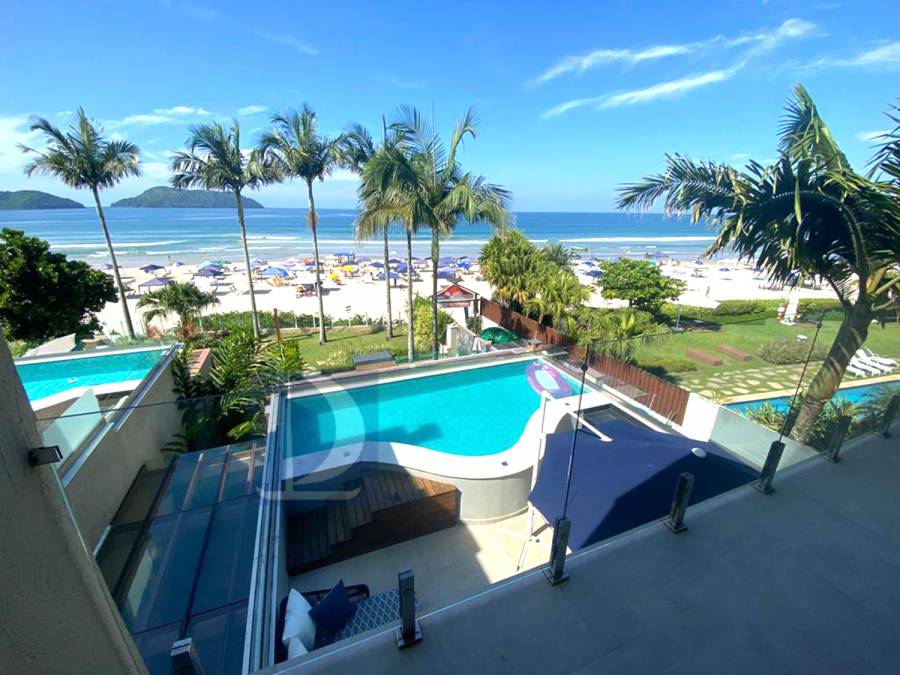 Residência frente ao mar em condomínio fechado com 700m² de área construída. Possui 4 suítes, sala de estar, jantar e tv, lavabo, cozinha, varanda, churrasqueira, piscina privativa e vaga para 2 autos.