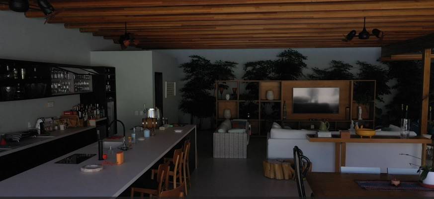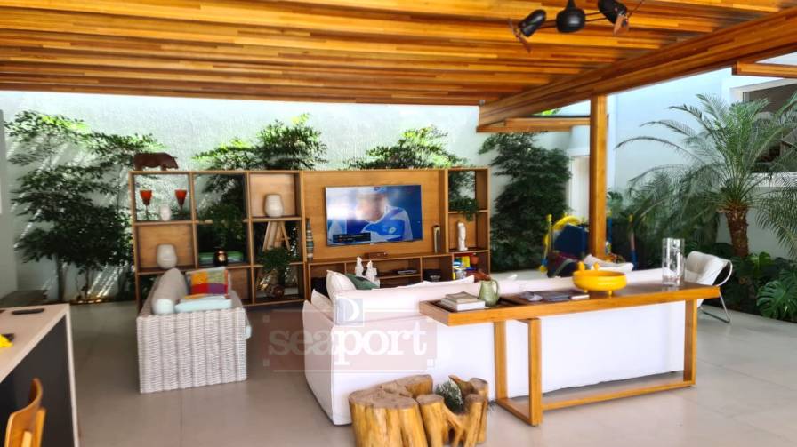 Residência à 300 metros da praia com 572m² de área construída em um terreno de 750m². Possui 4 suítes com varanda, cozinha, sala de estar e sala de tv, area gourmet muito bem decorada composta de churrasqueira e piscina