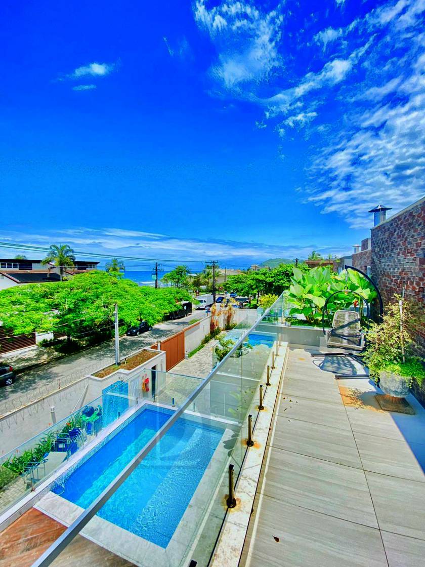 O condominio com 3 casas, sistema de CFTV, cada casa possui piscina com vista ao mar, chuveirão e serviço de praia.