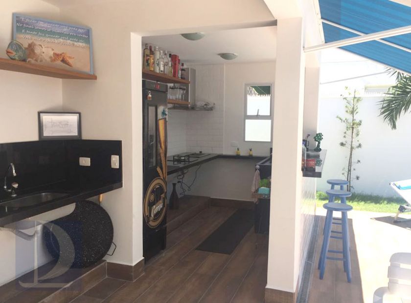 Possui 5 suítes, sala de estar, jantar Tv, varanda gourmet, piscina, cozinha americana, lavabo, dependência de empregada, churrasqueira e vaga para 4 autos.