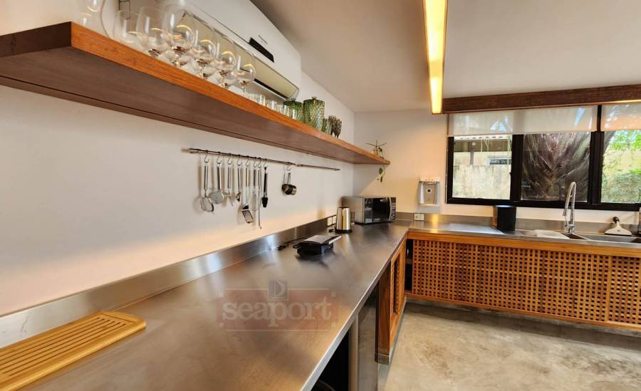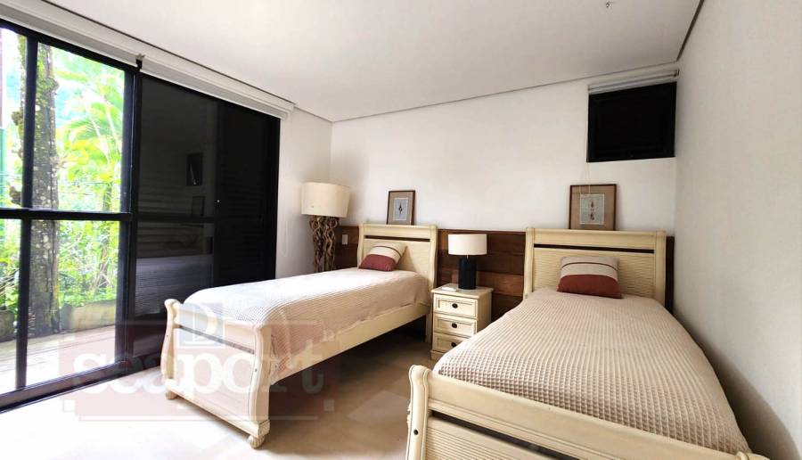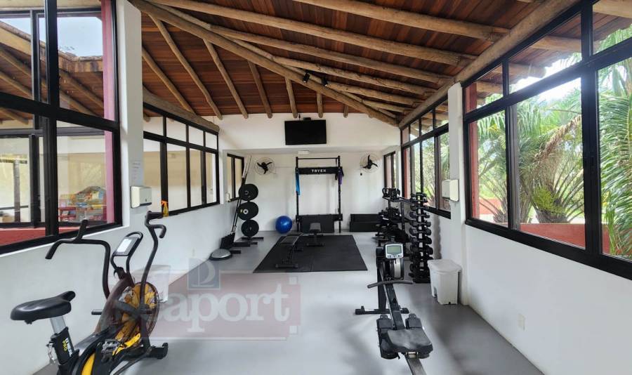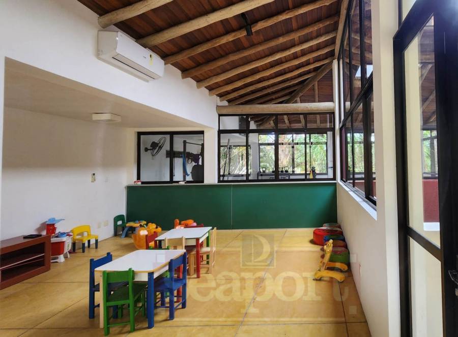 O condomínio possui 23.100m² com 30 casas isoladas, sede social, piscina semi-olímpica e infantil, spa, quadra de tenis e squash, sala de ginástica, sala de jogos, sauna seca e úmida, depósitos individuais p/ pranchas e bicicletas.