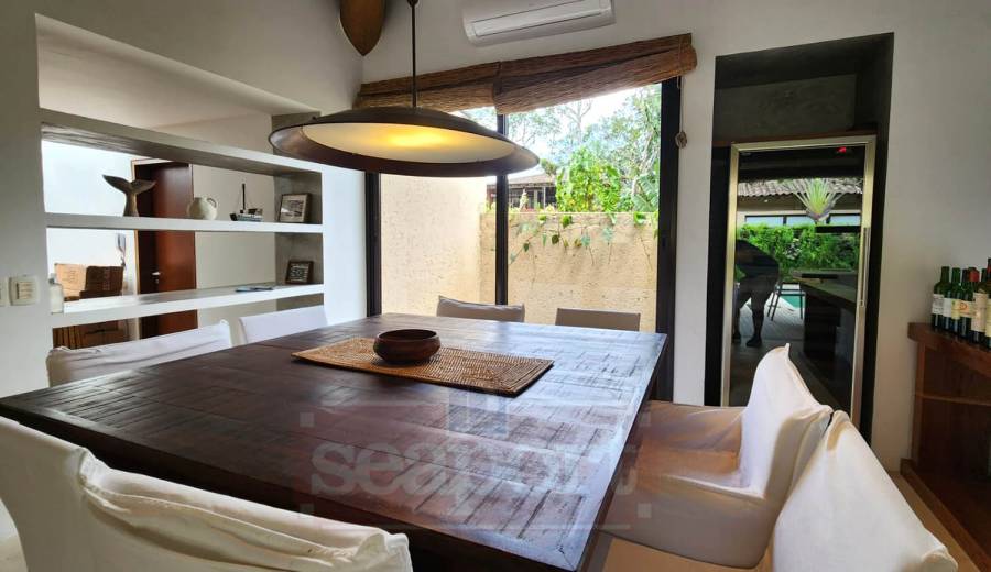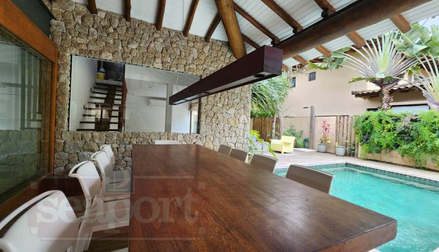 Residência em condomínio à 100m da praia cerca de 2 minutos de caminhada, com 340m² de área constr. em cota de terreno de 770m², sendo 600m² privativo. Possui 4 dormitórios, sendo 4 suítes todas com Closet e suite master com Jacuzzi, ambientes com 03 salas sala de estar, sala de TV, sala jantar e estar com varanda e amplo deck com churrasqueira, piscina, Ofuro e espaço gourmeat, Cozinha equipada com forno de pizza, geladeira duplex, cervejeira e adega para até 150 garrafas, lavabo e área de serviço com dispensa, vaga para 3 autos.
