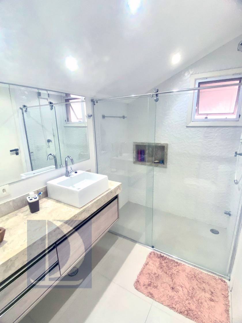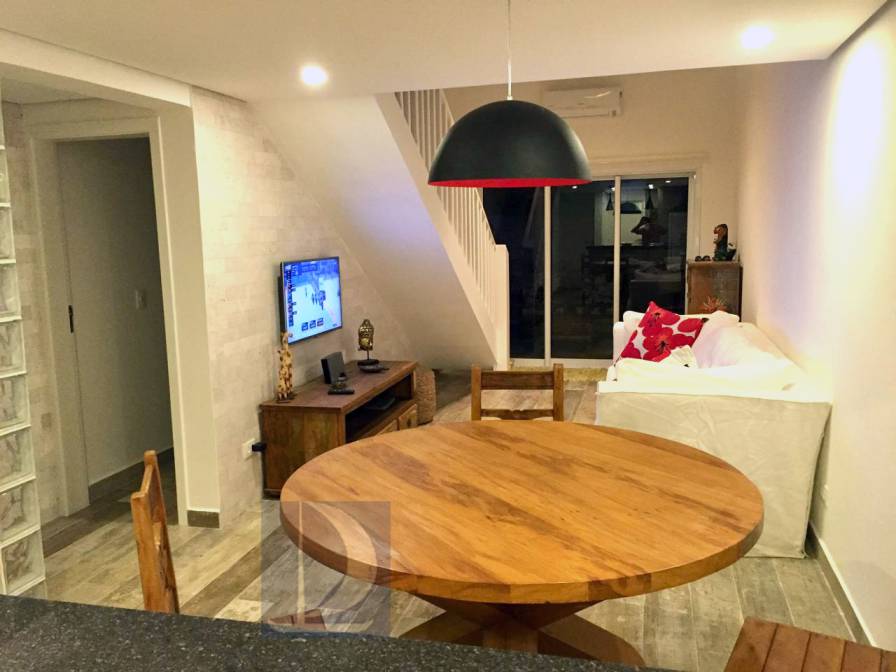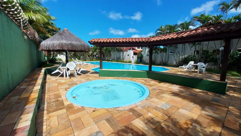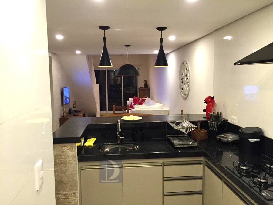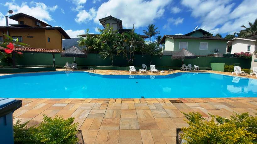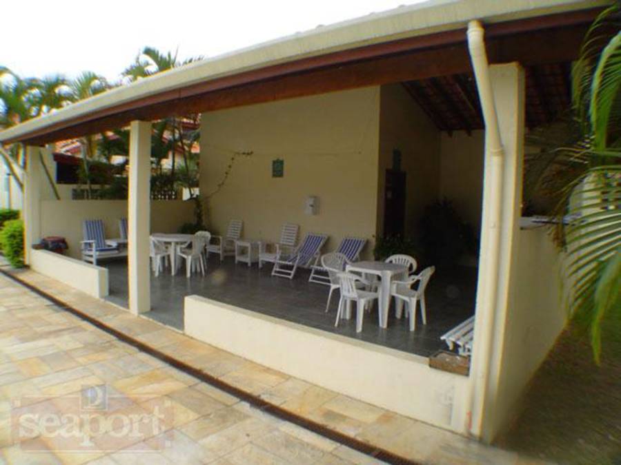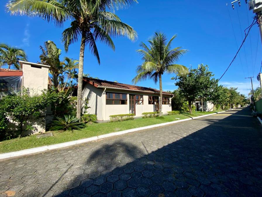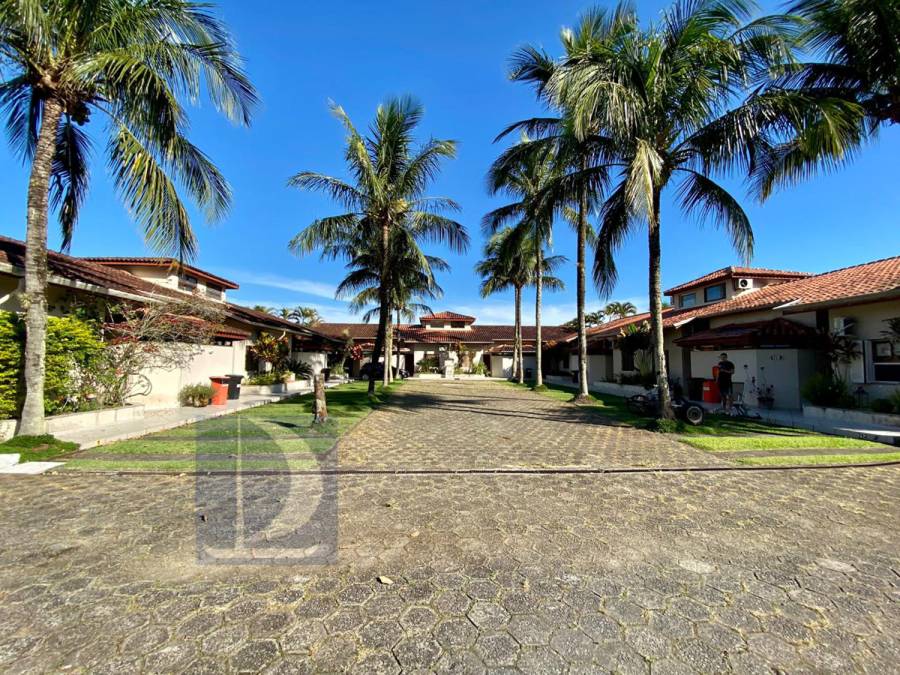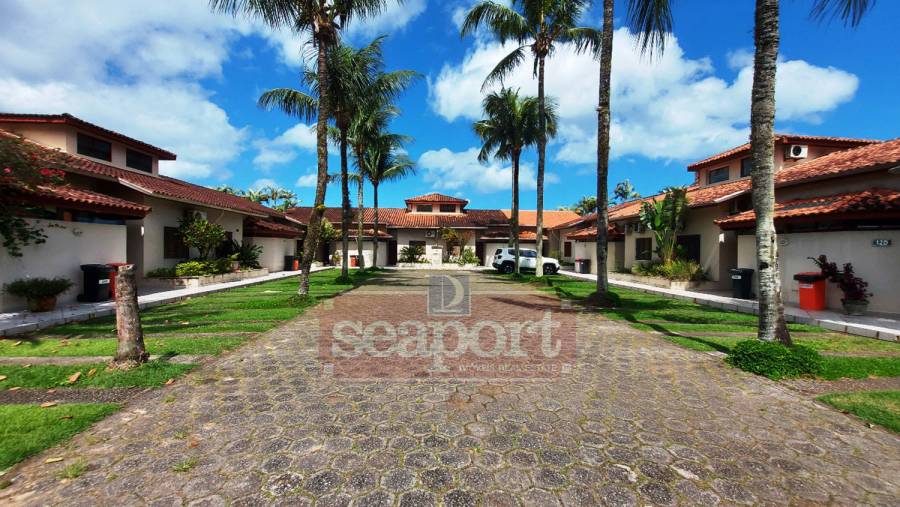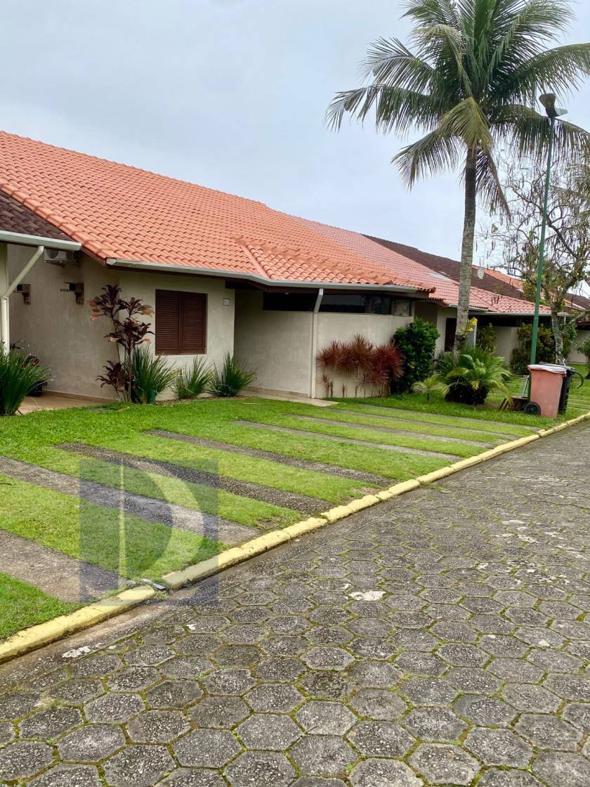 Residência em condomínio fechado à 130m da praia, com 110m² de área construída em fração ideal de terreno de 200m². Possui 3 suites, salas de estar e de jantar, sala de tv, terraço com churrasqueira e garagem para 3 autos.