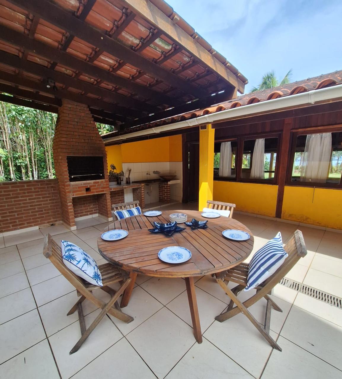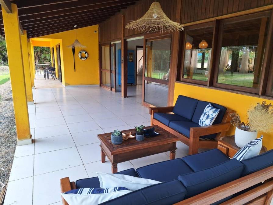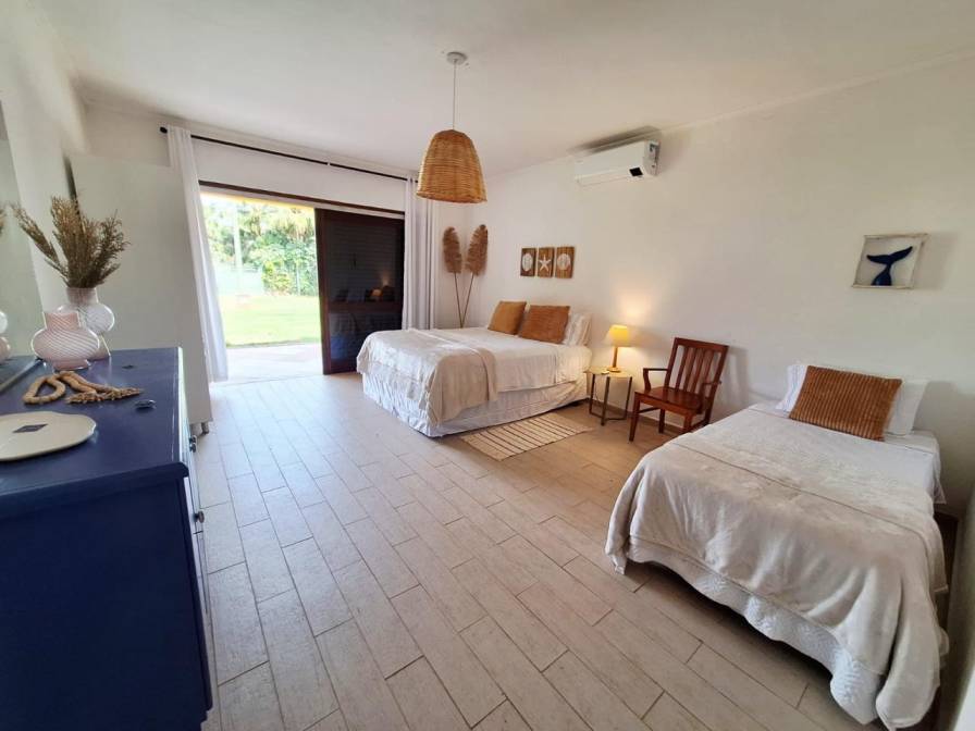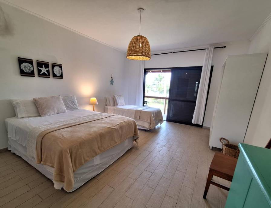 Residência frente ao mar, pé na areia, em terreno de 2.000m², possuí 5 suítes com ar condicionado, amplas sala de estar e jantar, varanda, cozinha e quadra de tênis exclusiva e ampla área verde. Possui vaga para 5 carros.