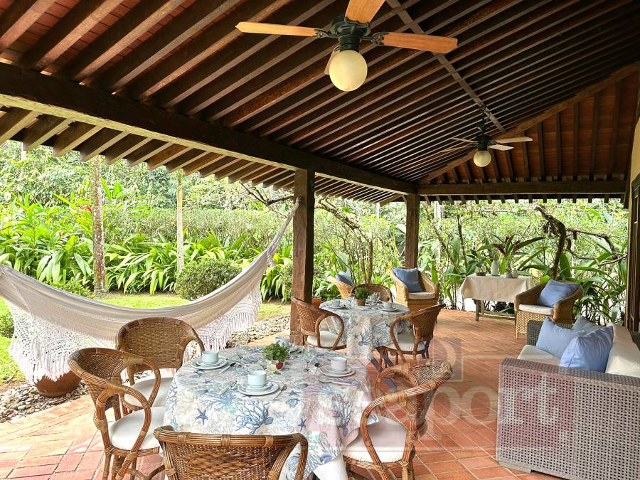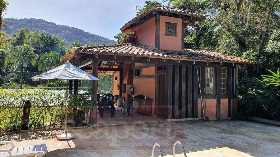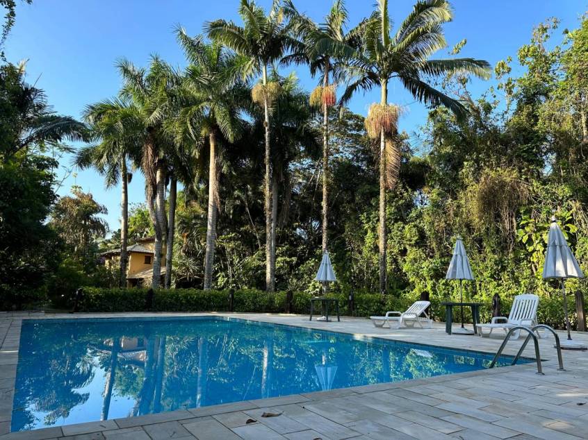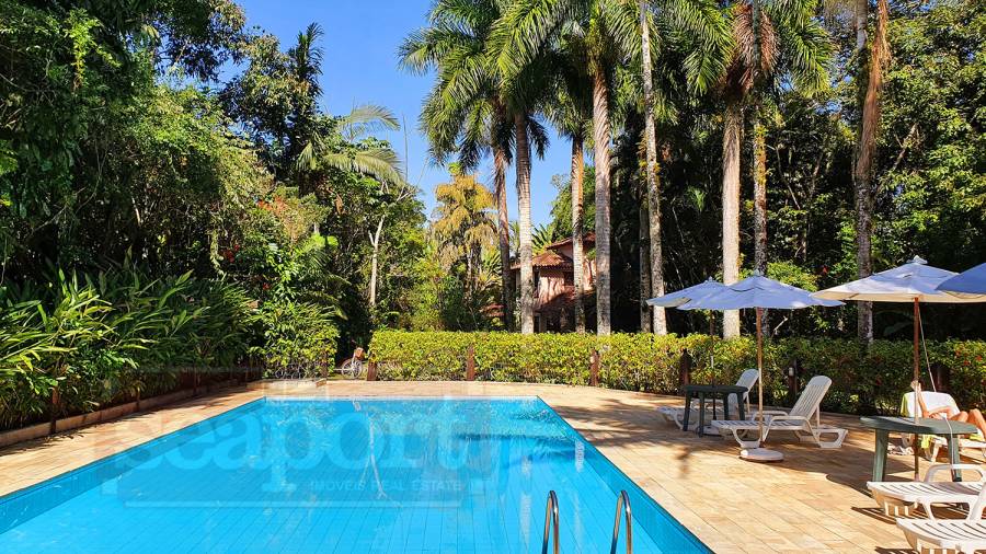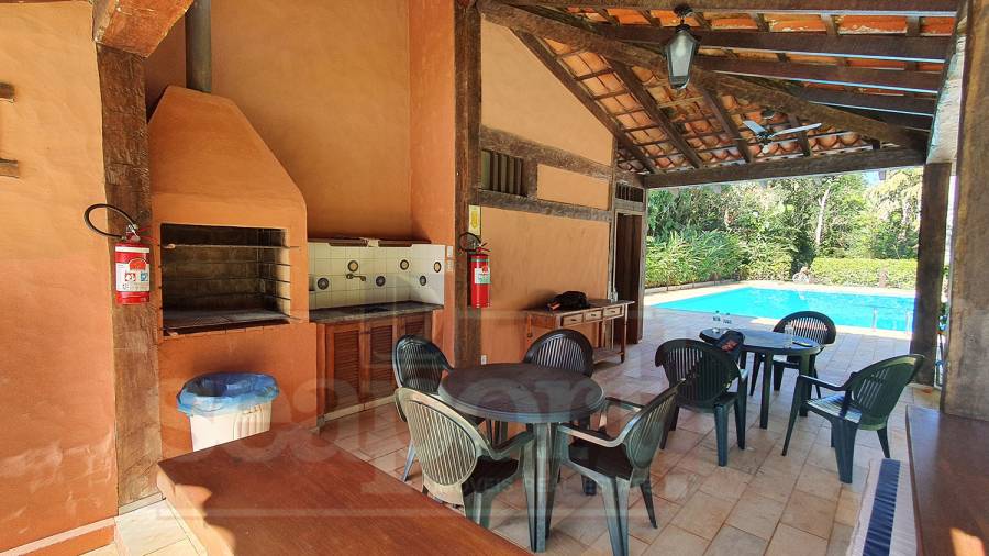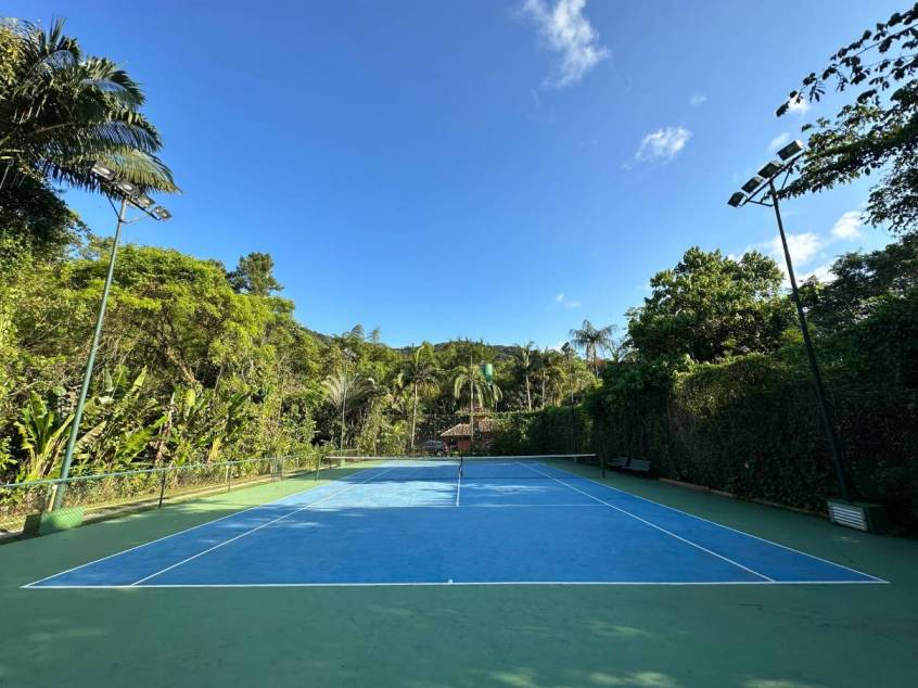 O condomínio possui apenas 6 residências, piscina, quadra de tênis, lindo paisagismo com muita "áerea" verde no entorno e zeladoria.
