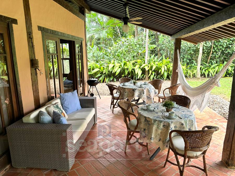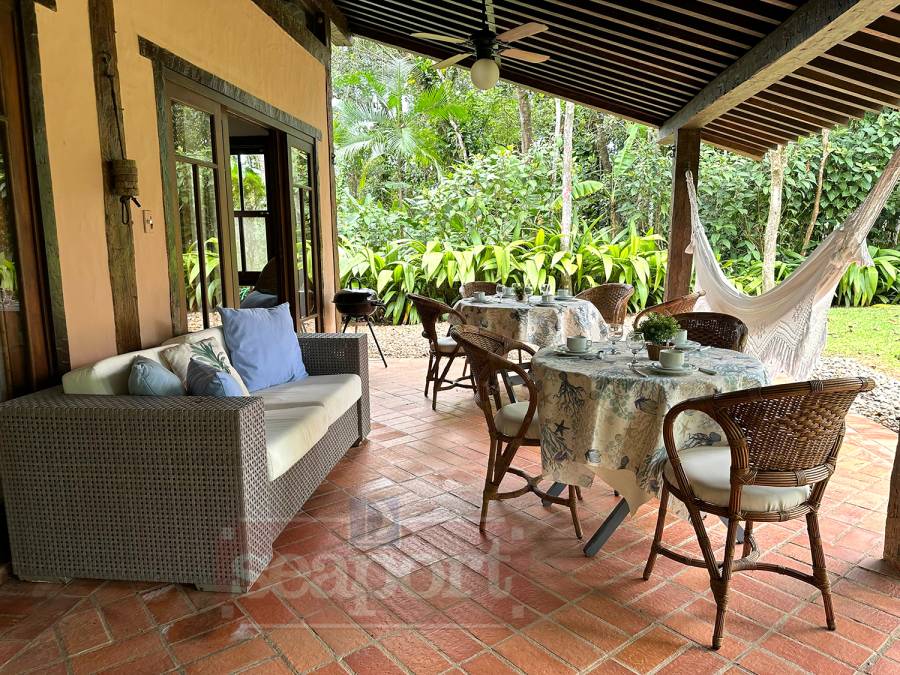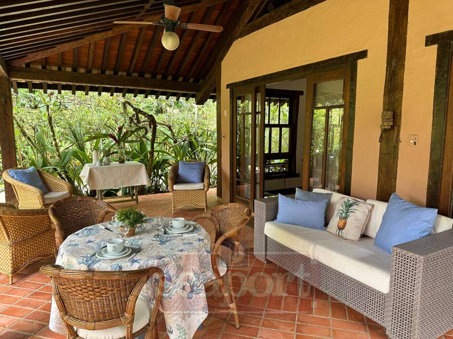 Residência isolada e charmosa em condomínio fechado à 350m da praia com 204m² de área construída, em fração ideal de terreno com 1.280m². Possui 4 dormitórios, sendo 2 suítes, cozinha, sala de estar e jantar, varanda e vaga para 3 autos.