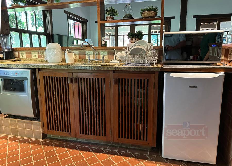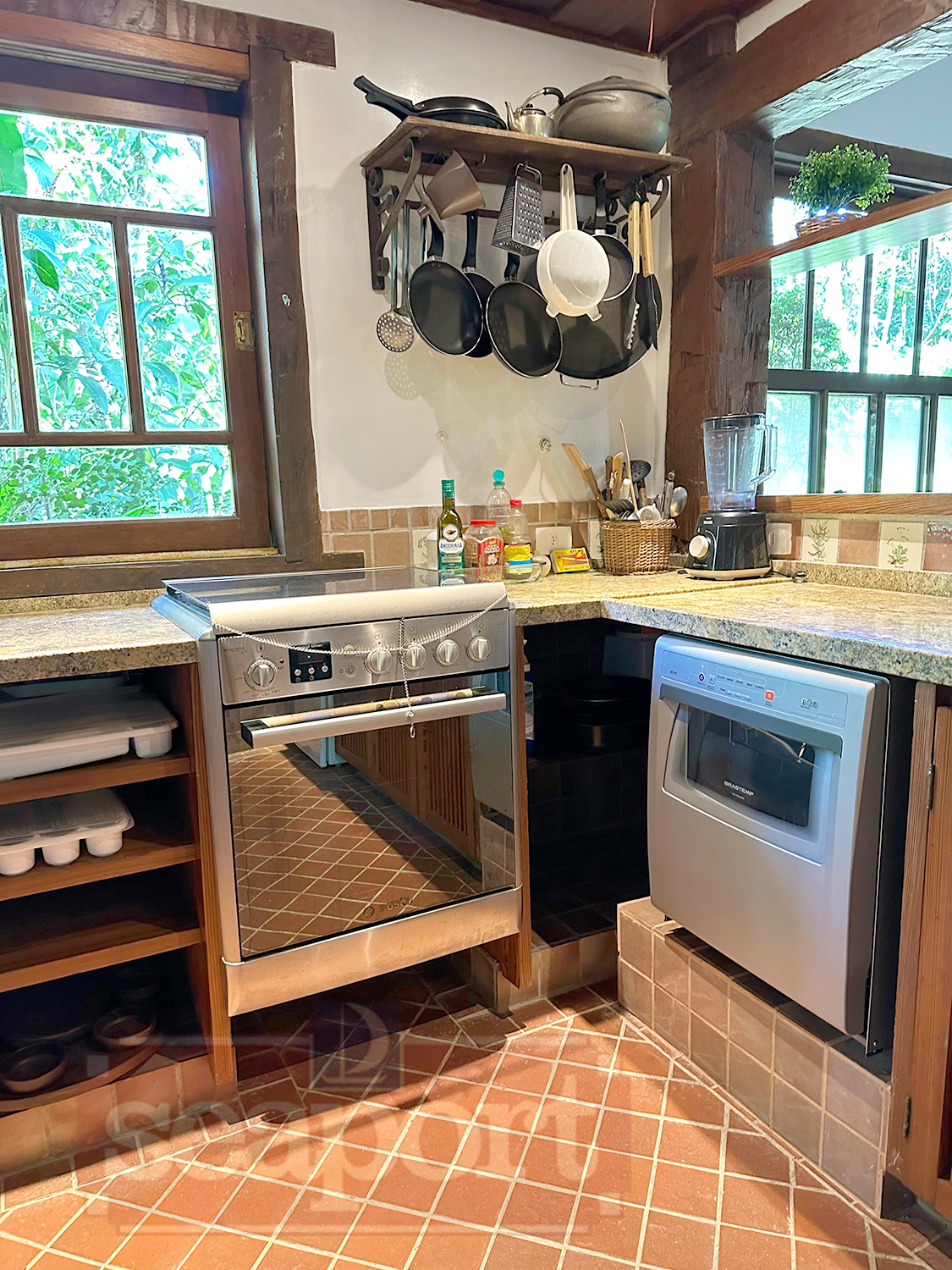 A casa possui decoração completa, louças e utensílios de cozinha,