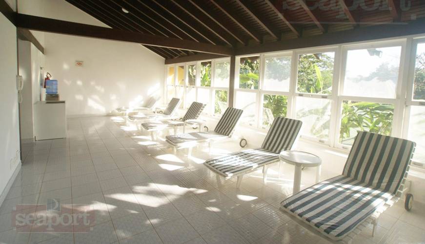 Condomínio de frente para o mar com 35 residências isoladas, piscina ao lado da praia, quadra de tênis, quadra de squash, sauna seca e úmida, play-ground, sala de festas e jogos, serviço de praia, zeladoria, dependência de empregados e portaria