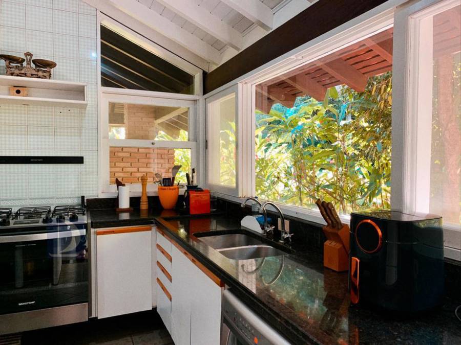 Residência em cond. frente ao mar, com 323m² de área construída em fração de terreno de 1.289m². Possui 4 suites, sala de estar, tv e jantar, lavabo, cozinha, varanda, dependência de empregada, área de serviço e vaga para 3 autos.