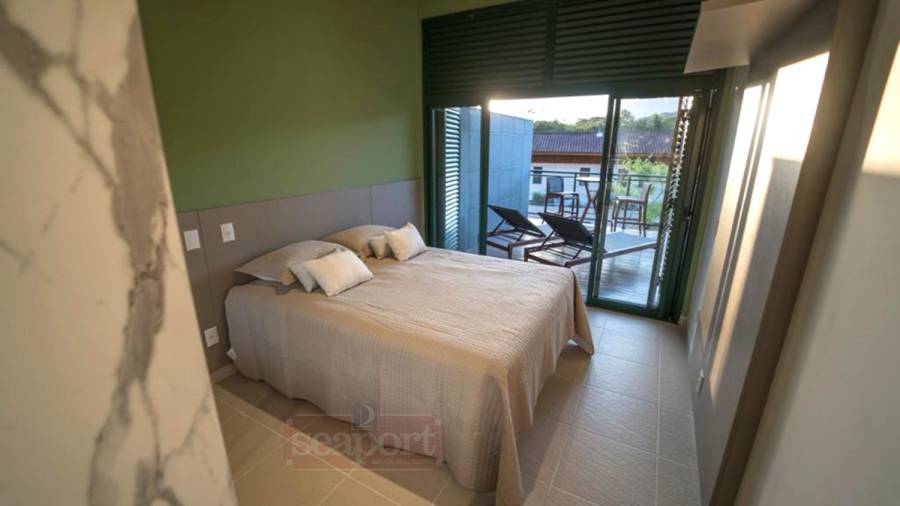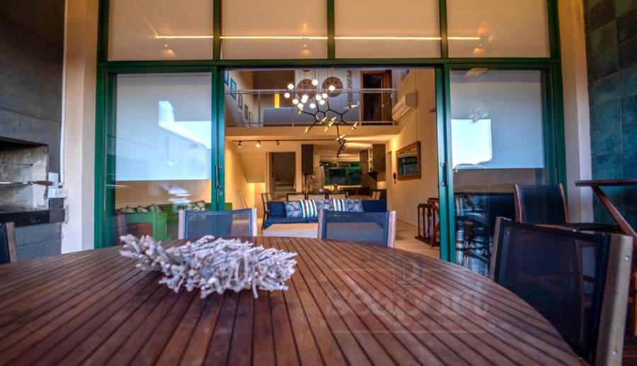 Residência em condomínio fechado a 1300m da praia com 144m² de área construida, possui 4 domitórios sendo 2 suítes, ampla sala, cozinha, varanda e 2 vagas de garagem.