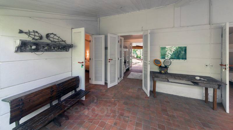 Residência fora de condominio à 400m da praia com 350m² de área construída e 720 m² de terreno, possui 4 dormitórios sendo 2 quartos com beliches e 2 quartos com cama de casal e uma suite Master, 4wc, amplas salas de estar e jantar, cozinha, varanda, churrasqueira, piscina e 2 vagas de garagem.