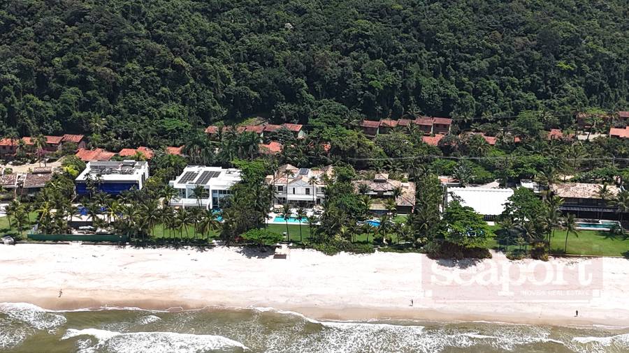 Residência em frente ao mar de altíssimo padrão, com 390m² de área construída e terreno privativo de 321m². Possui 6 suítes, sendo 1 no térreo, ampas salas de estar, jantar e tv, lavabo, área de serviço, varanda com espaço gourmet, jacuzzi e vaga para 4